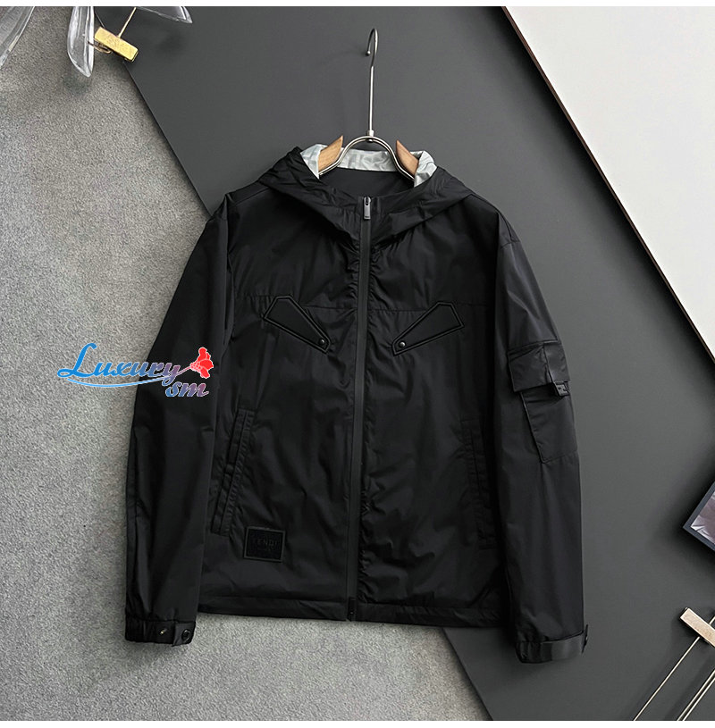 FENDI-03036 펜디 블랙 백 버그 아이 장식 바람막이 후드 재킷 남성용