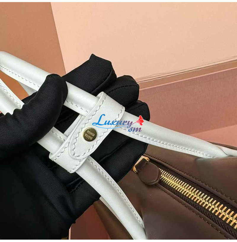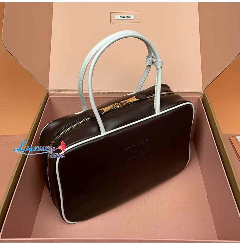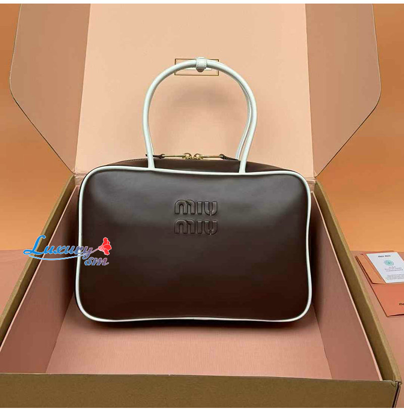 [스페셜오더]MIUMIU-5BB117 미우미우 브라운/화이트 송아지 가죽 보 백
