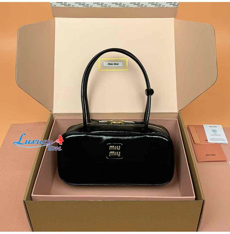 [스페셜오더]MIUMIU-5BB173 미우미우 블랙 나플락 페이턴트 가죽 보 백