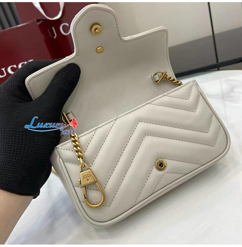 [스페셜오더]GUCCI-476433 9022 구찌 GG 마몽 화이트 가죽 수퍼 미니백