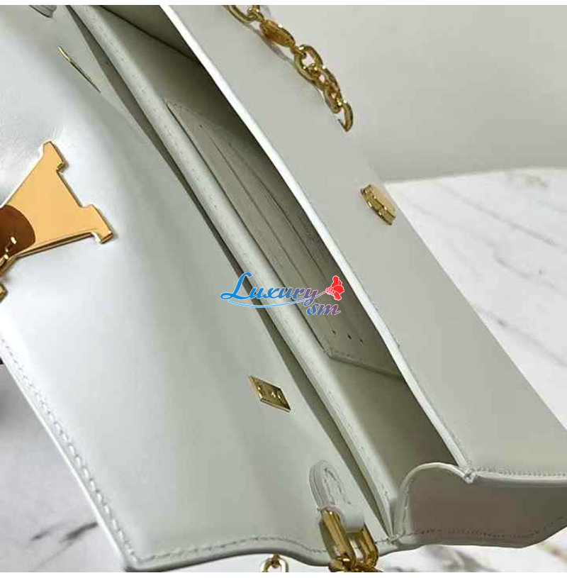 [스페셜오더]LOUIS VUITTON-M12265 루이비통 화이트 송아지 가죽 월릿 온 체인 카퓌신