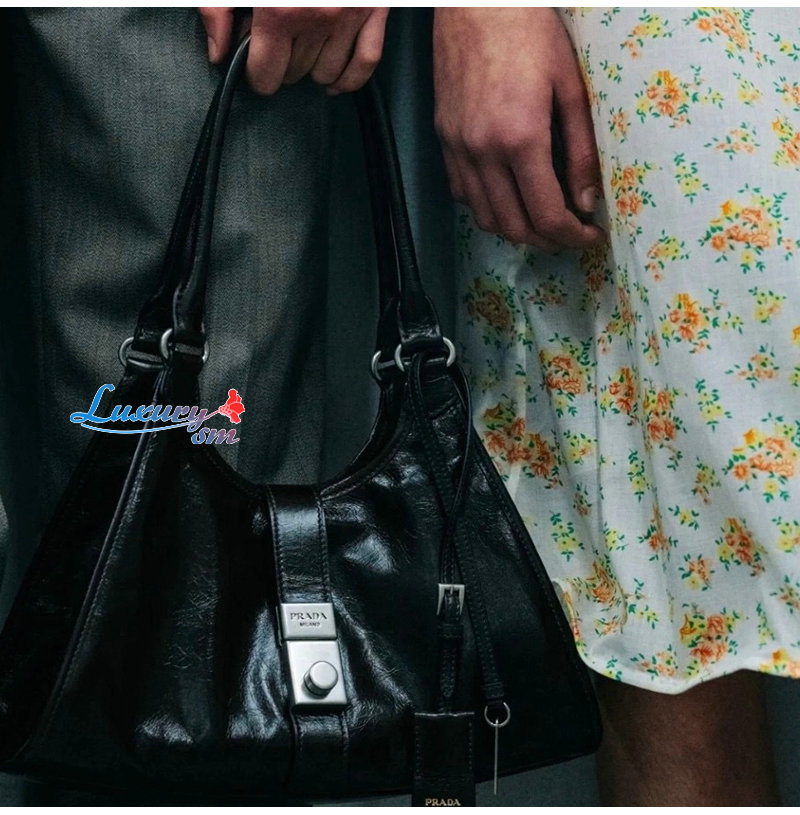 PRADA-1BG563 프라다 블랙 미디엄 가죽 토트백