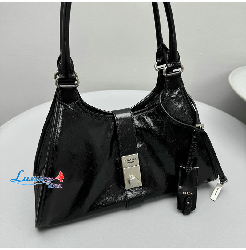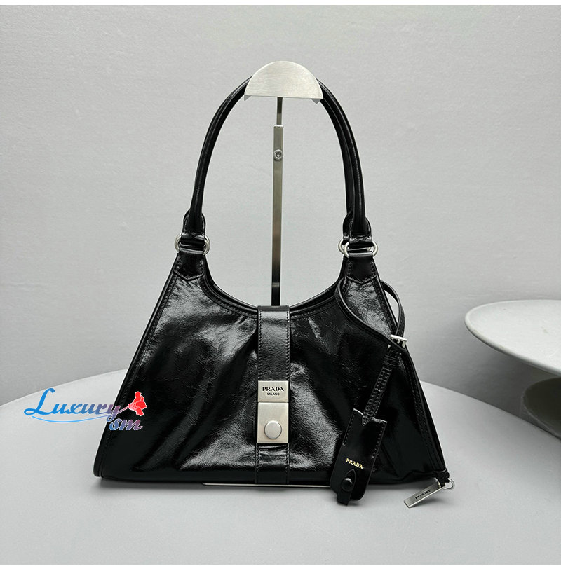 사다리꼴 디자인에 긴 핸들이 달려 있어 숄더백으로