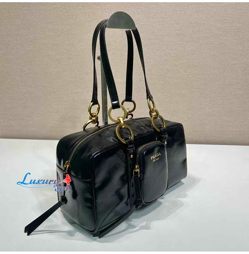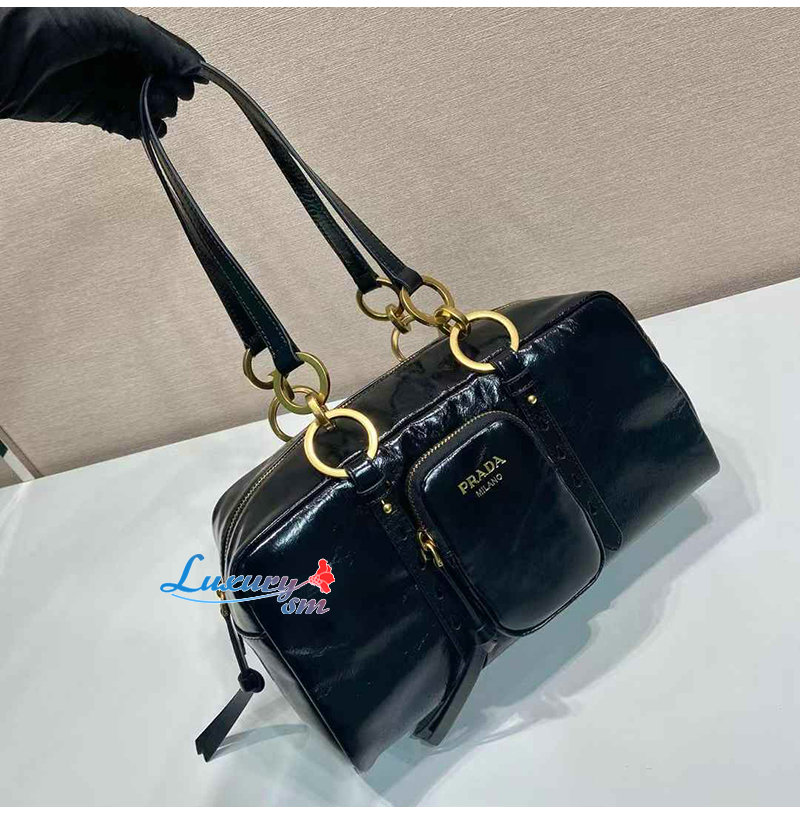 [스페셜오더]PRADA-1BB138 프라다 블랙 댕글 가죽 미디엄 탑 핸들 백