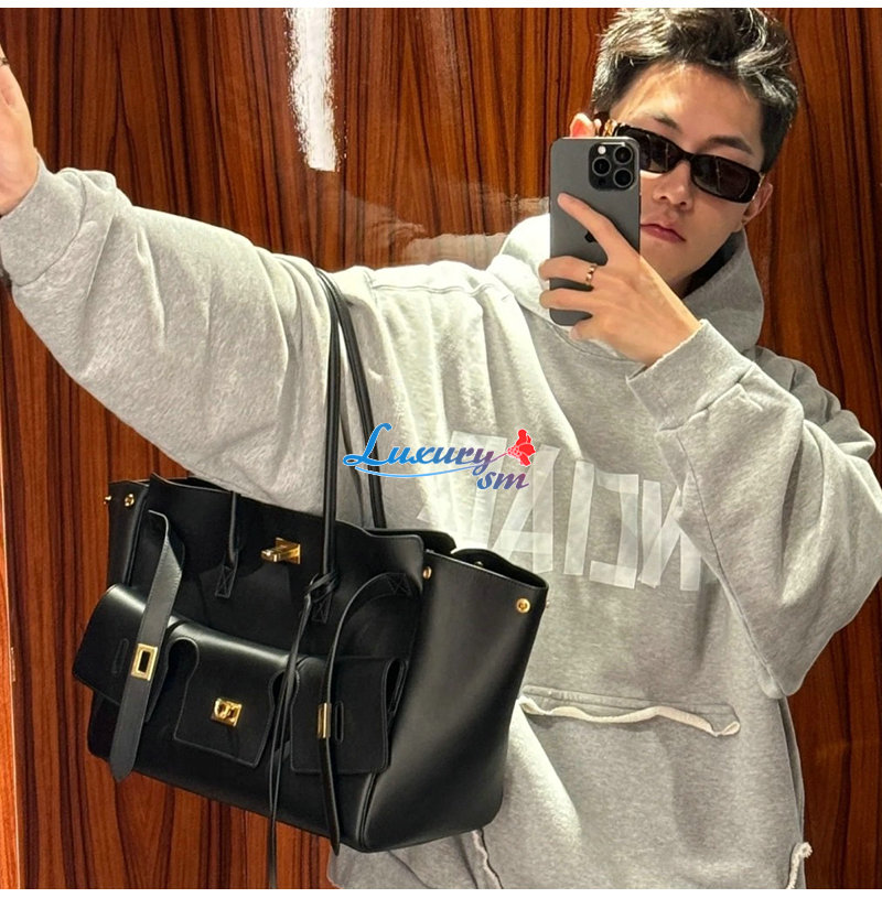 [스페셜오더]BALENCIAGA-812545 발렌시아가 블랙 금장 벨 에어 스몰 캐리 올 백