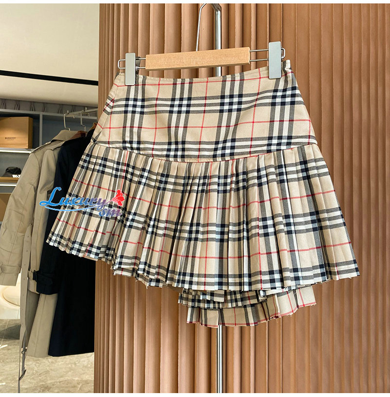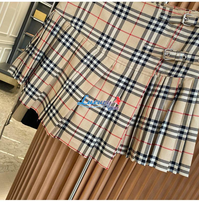BURBERRY-80258321 버버리 베이지 플리츠 체크 울 미니 킬트