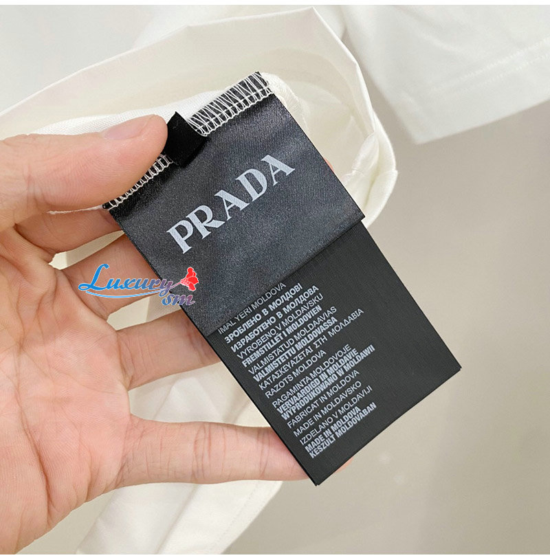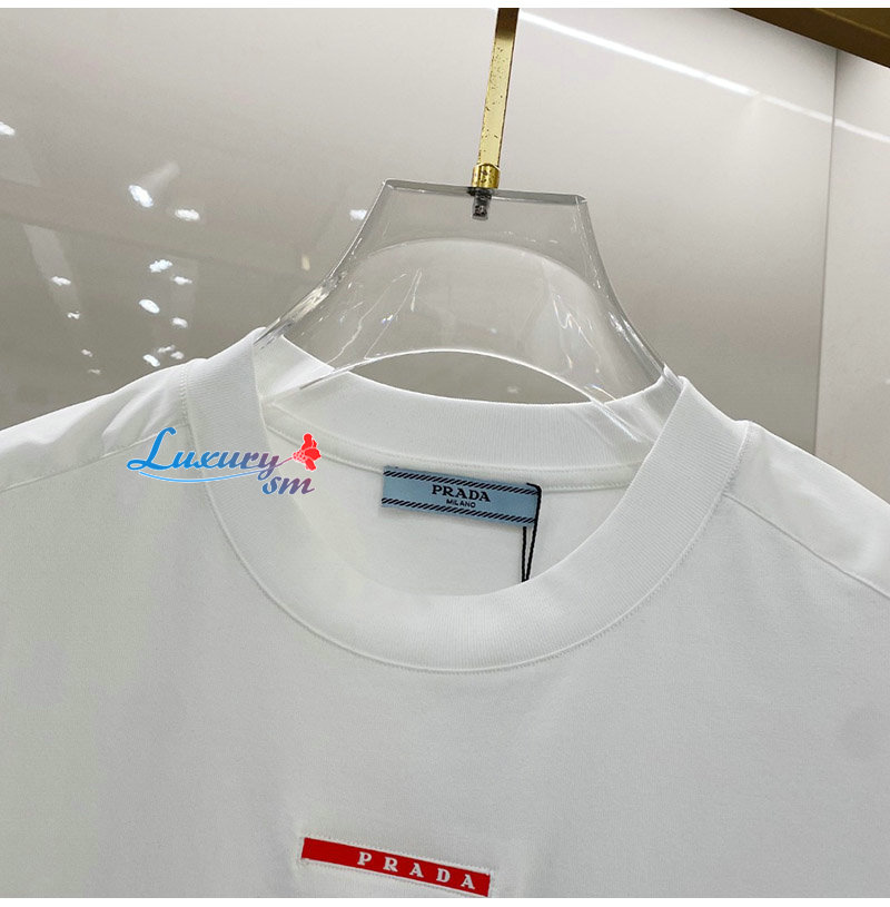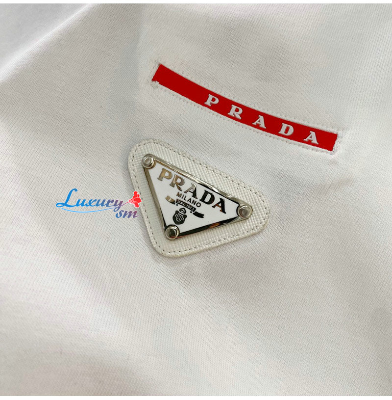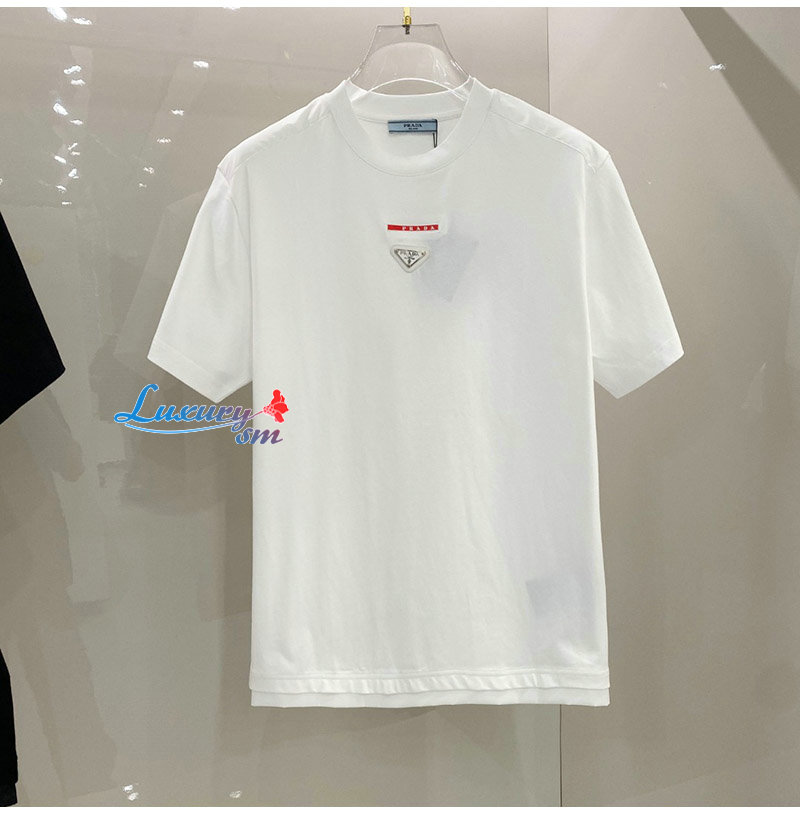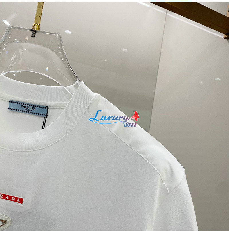 PRADA-032710 프라다 화이트 트라이앵글 로고 티셔츠 남여공용