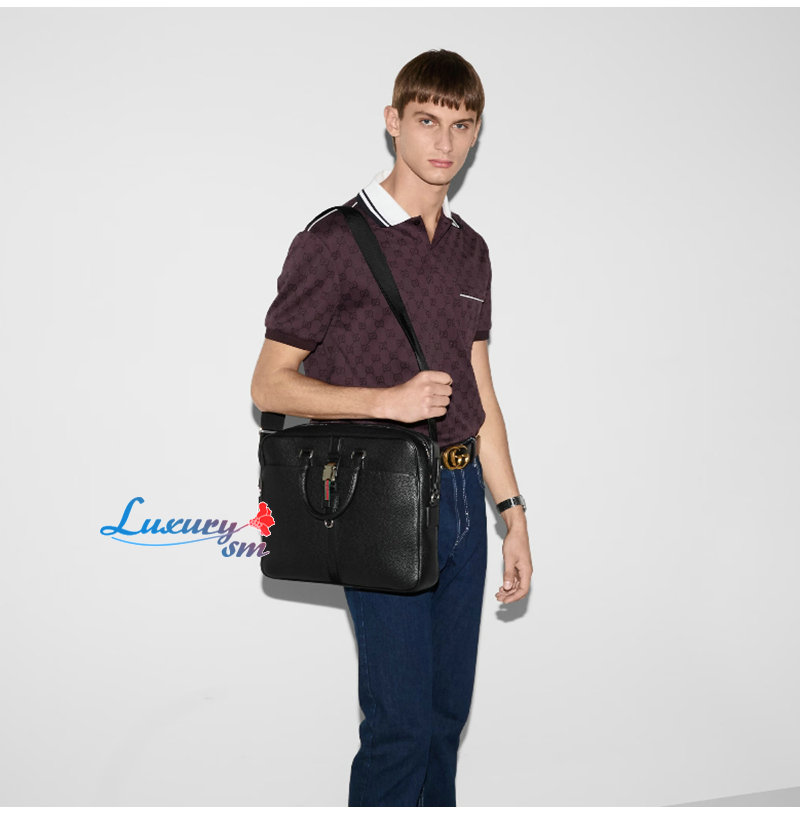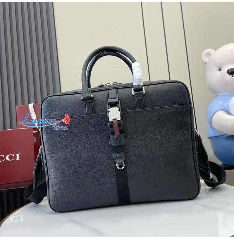 [스페셜오더]GUCCI-816757 1042 구찌 블랙 웹 디테일 미디엄 브리프케이스