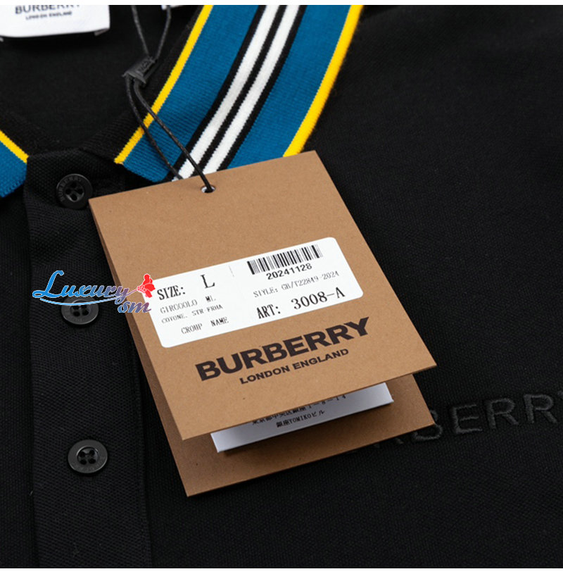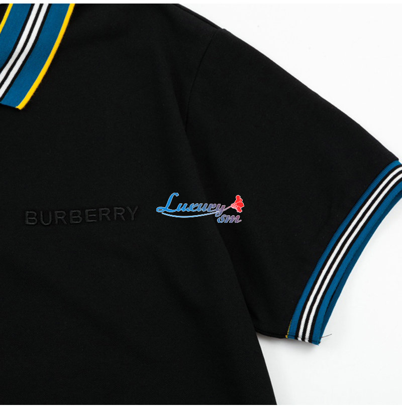 BURBERRY-04016 버버리 블랙 스트라이프 장식 폴로 티셔츠 남성용