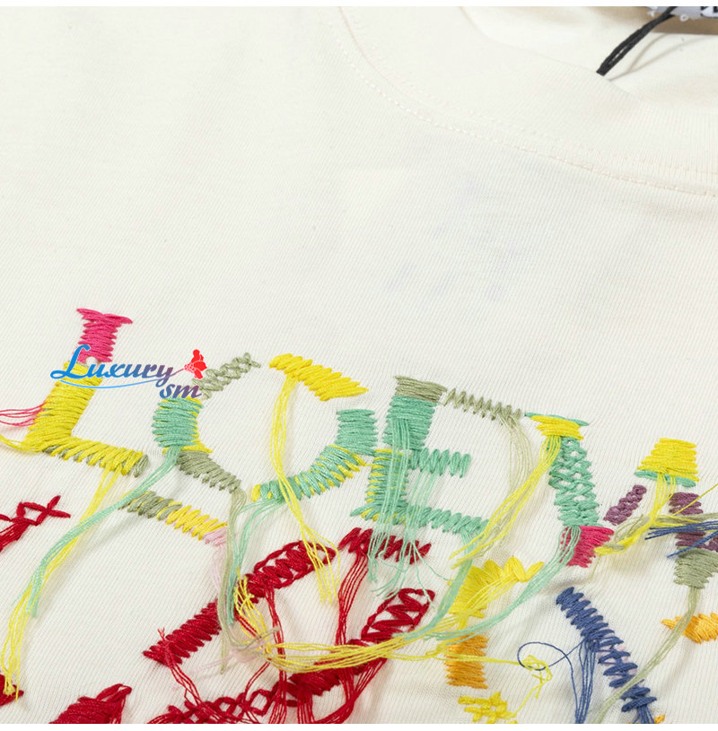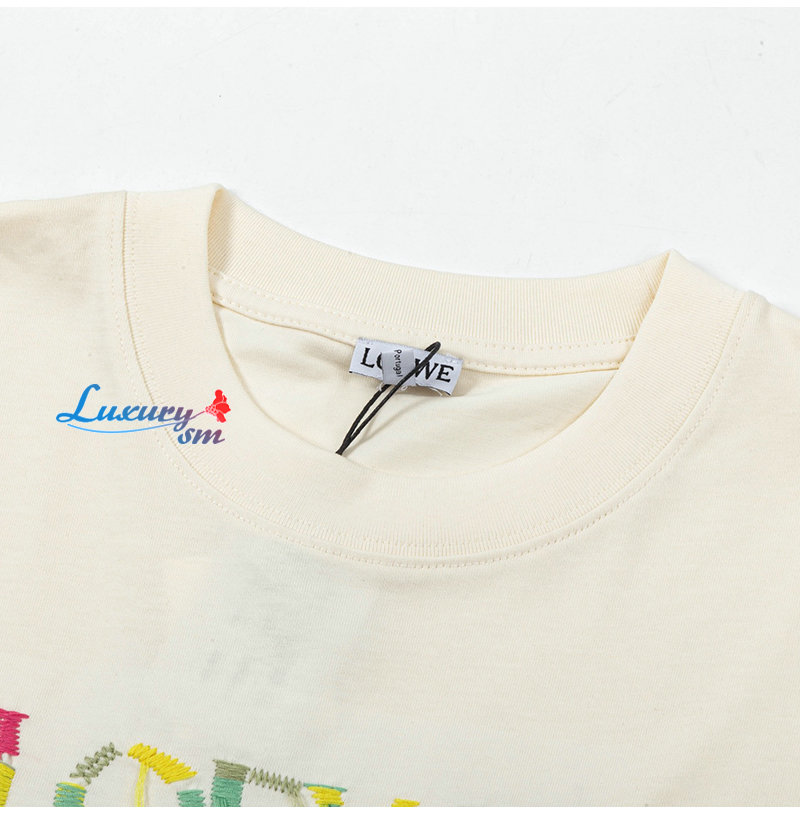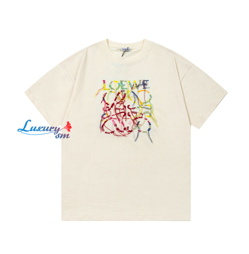 LOEWE-040110 로에베 아이보리 로고 아플리케 장식 티셔츠 남여공용