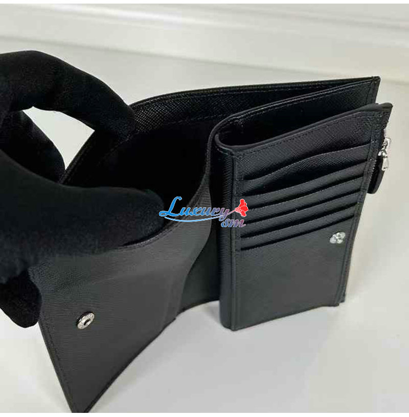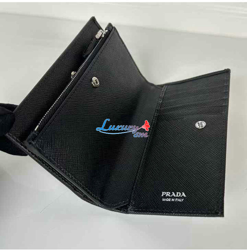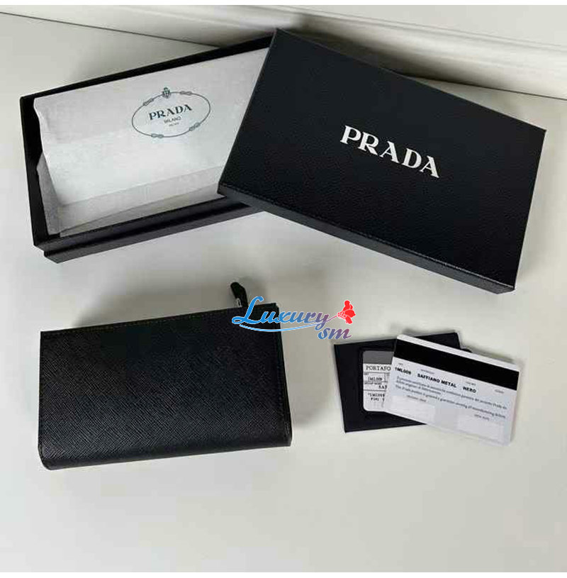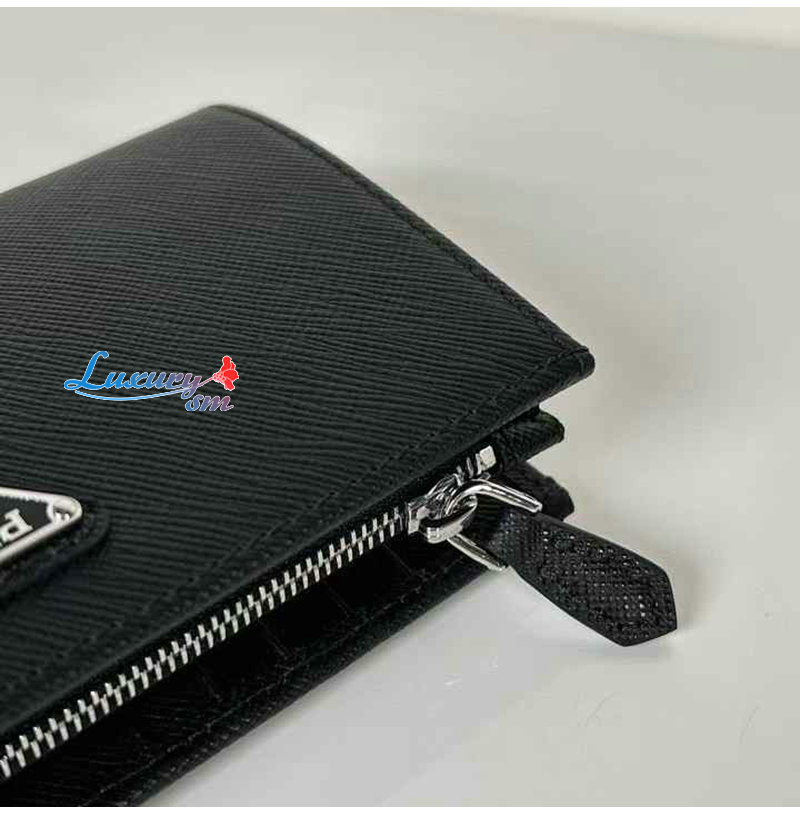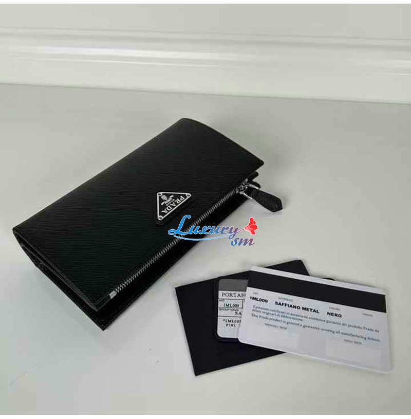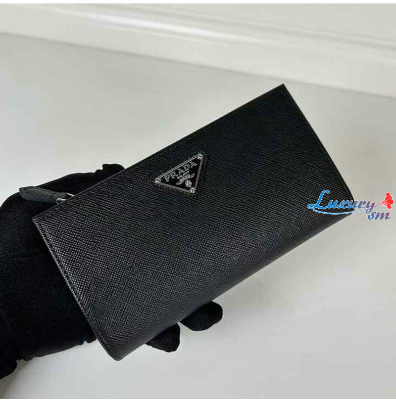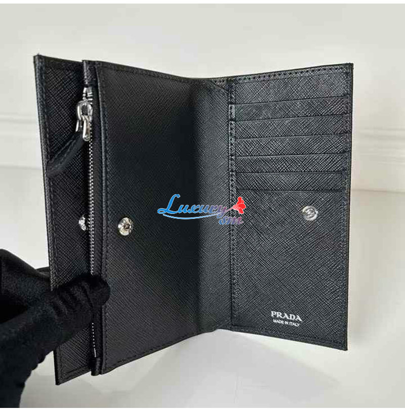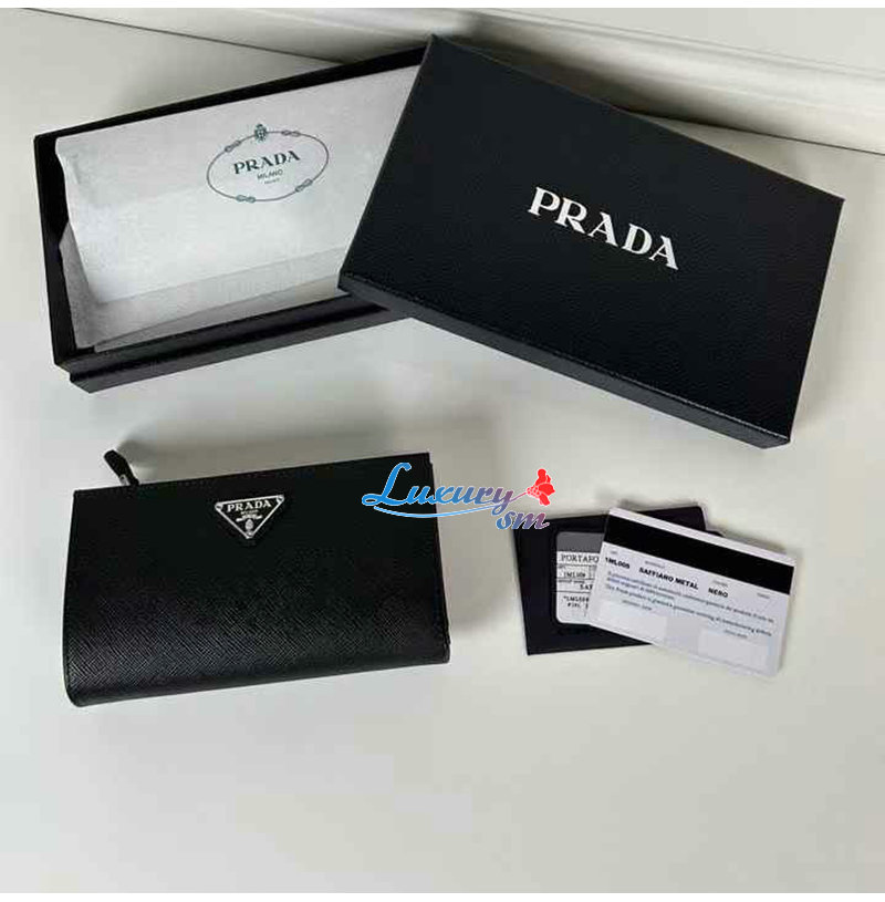 [스페셜오더]PRADA-1ML009 프라다 블랙 금장 사피아노 트라이앵글 로고 중지갑