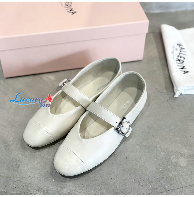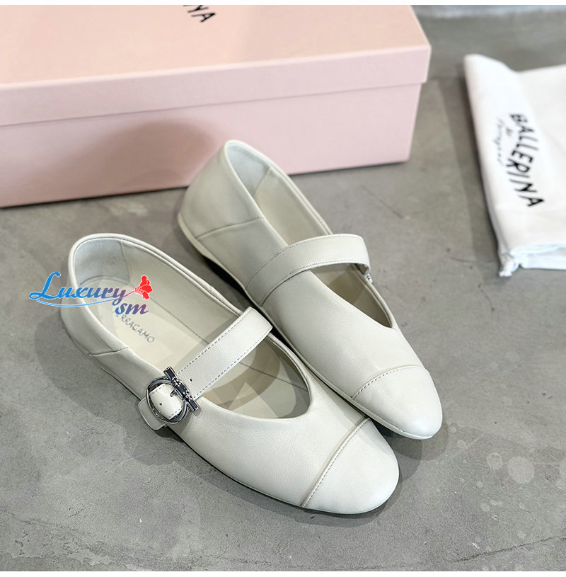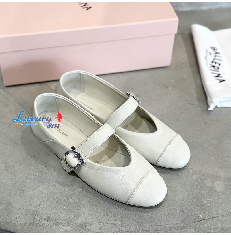 Ferragamo-01J947 페라가모 화이트 간치니 발레 플랫