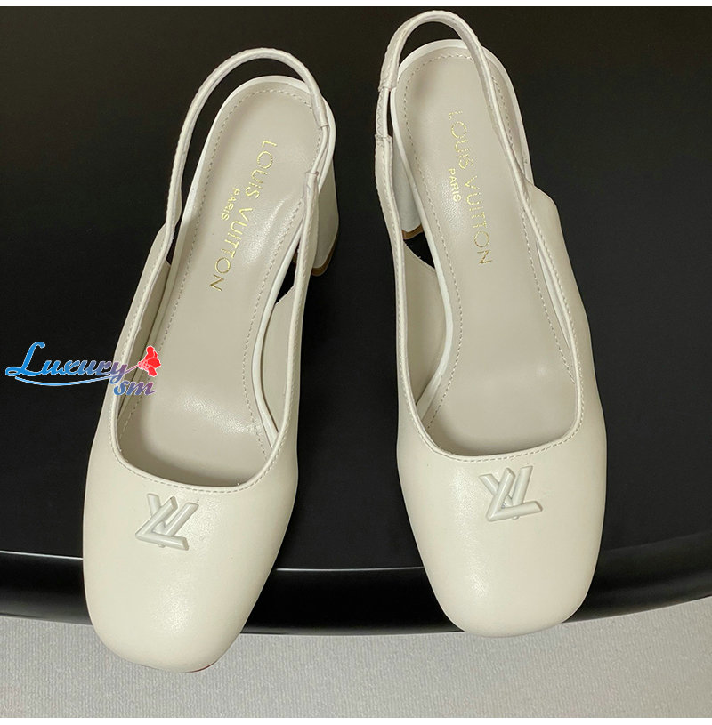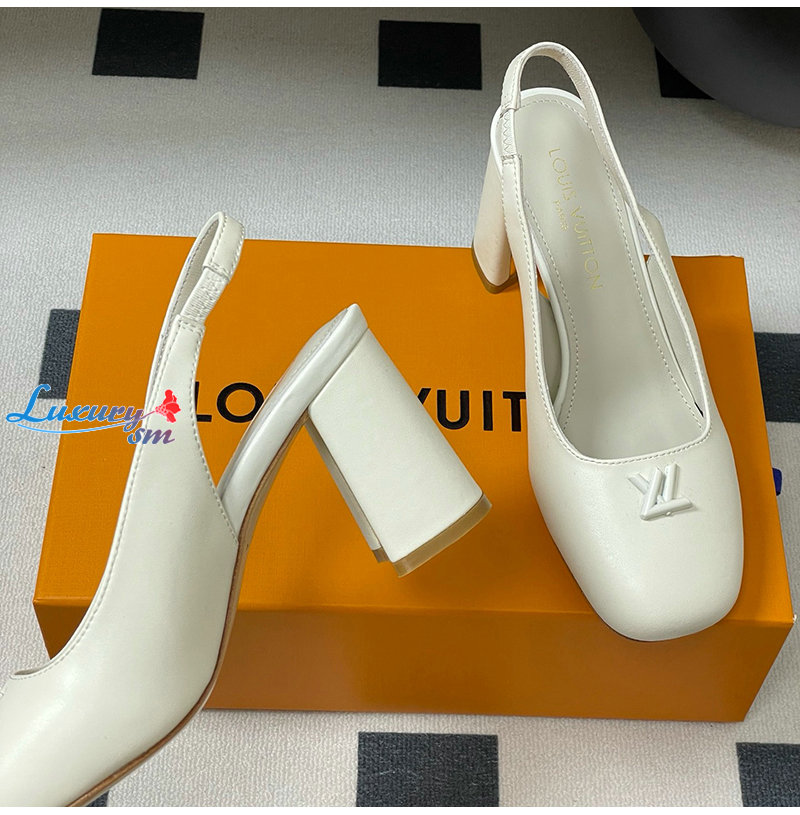LOUIS VUITTON-1AGUH0 루이비통 화이트 송아지 가죽 스윙 슬링백 펌프스