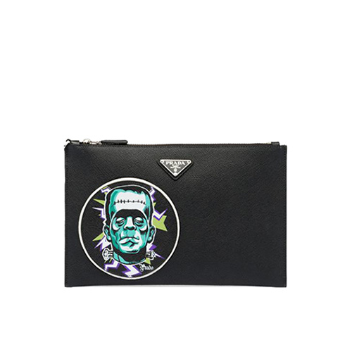 [스페셜오더]PRADA-2NH005 프라다 올오버 프랑켄슈타인 모티프 패치 사피아노 가죽 파우치