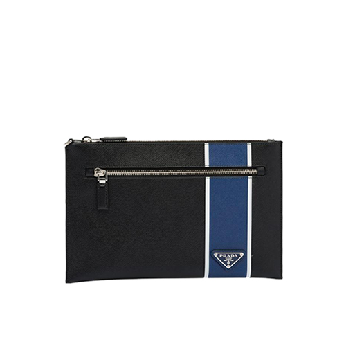 [스페셜오더]PRADA-2NH005 프라다 블랙/콘플라워 블루 사피아노 가죽 지퍼 파우치