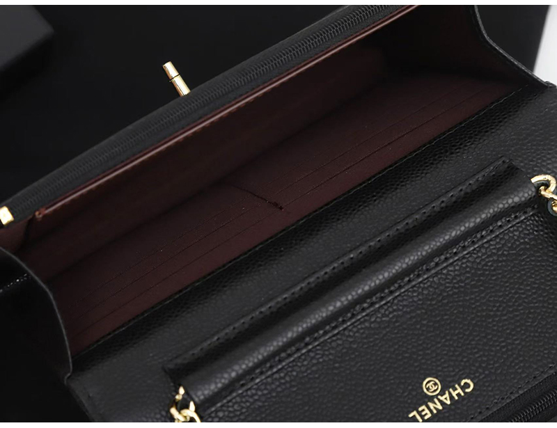[스페셜오더]CHANEL-AP0250 2025년 신상 샤넬 블랙 금장 캐비어 턴락 월렛 온 체인 WOC
