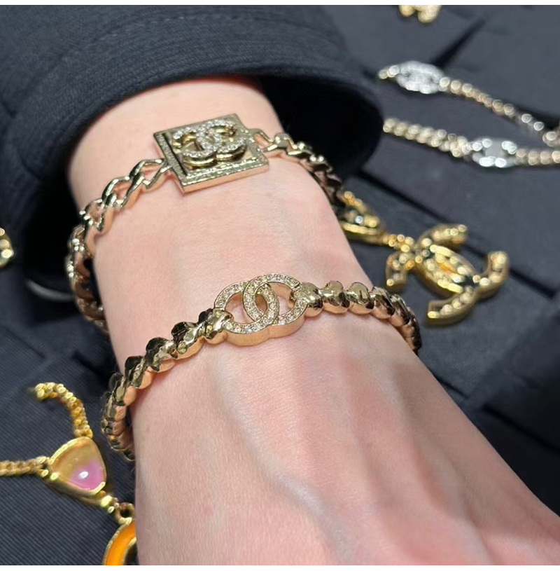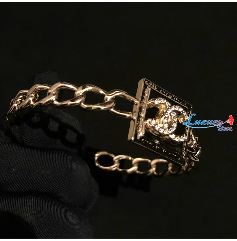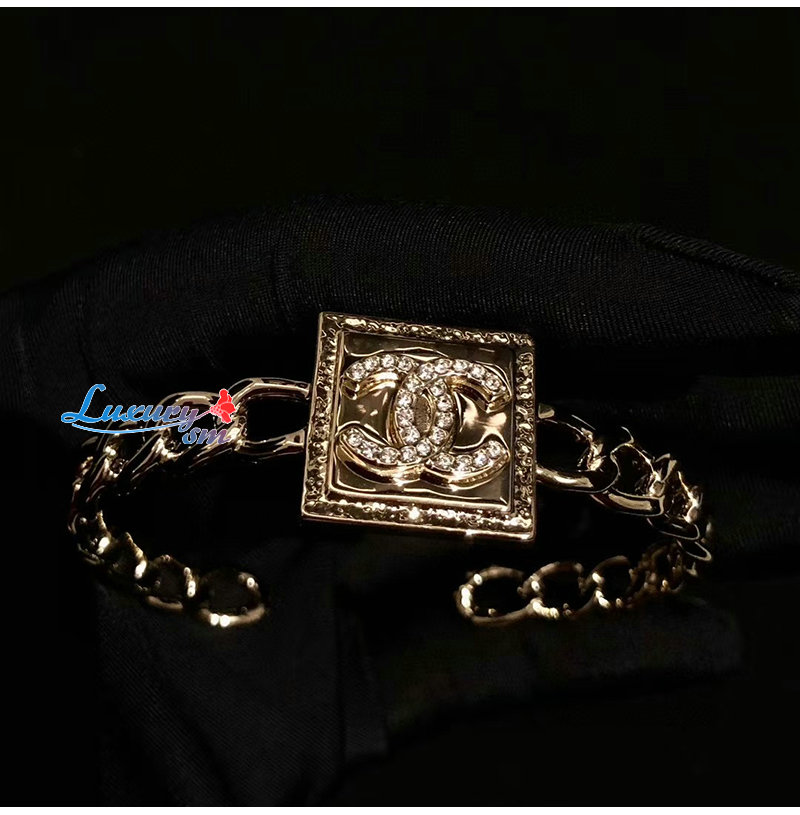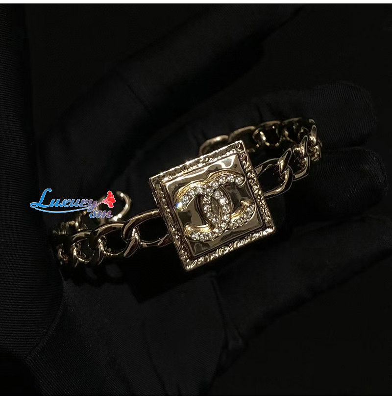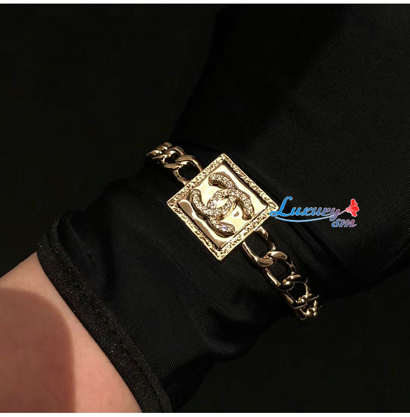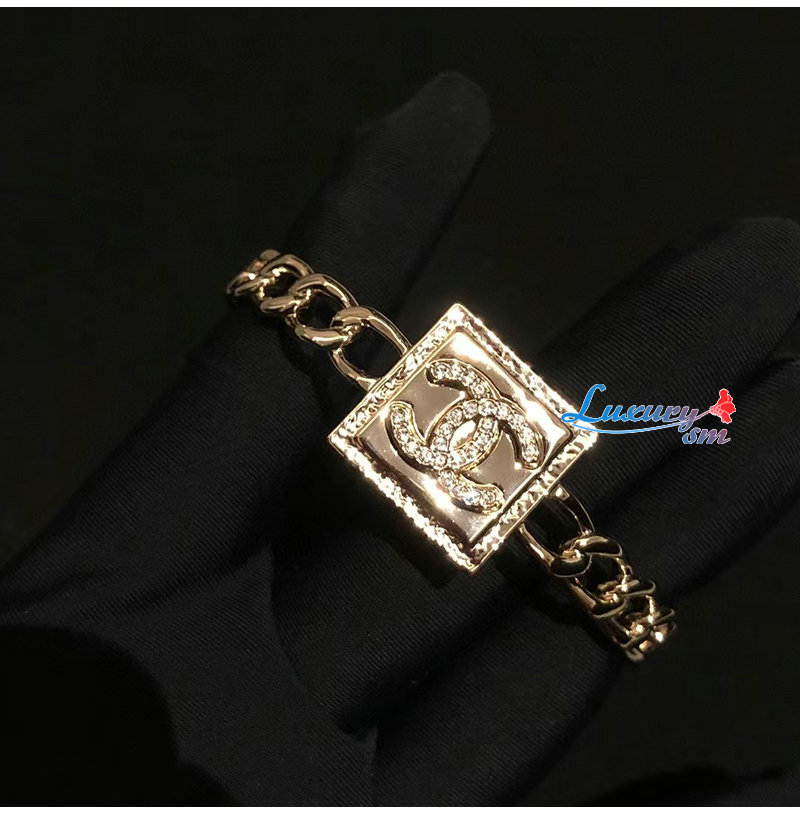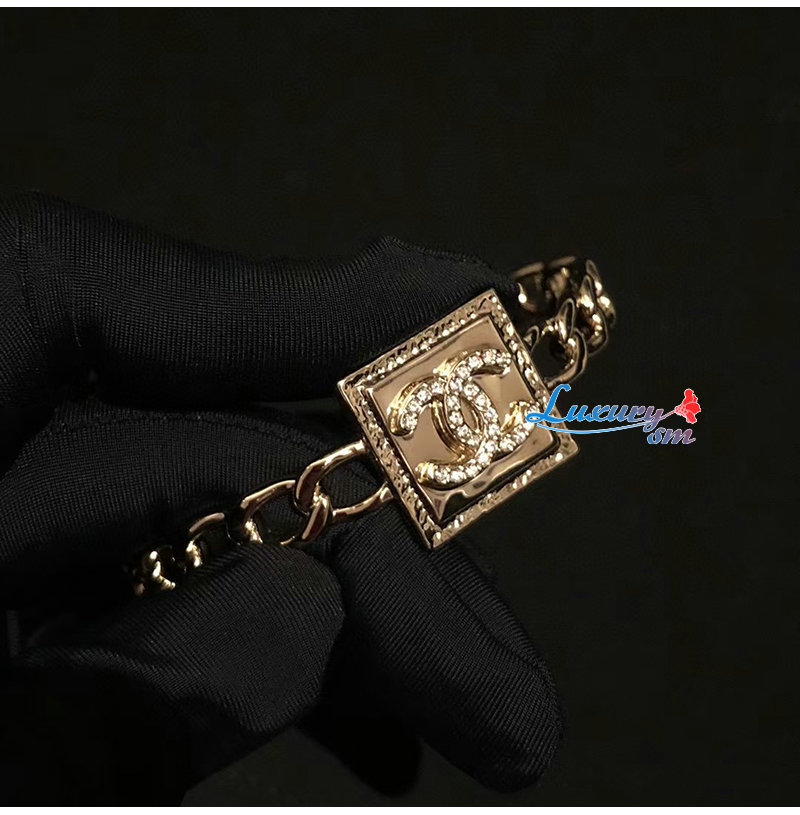 CHANEL-7222 샤넬 골드 CC 로고 스퀘어 팔찌