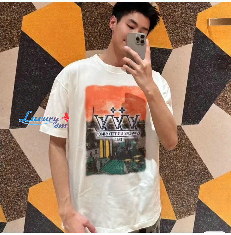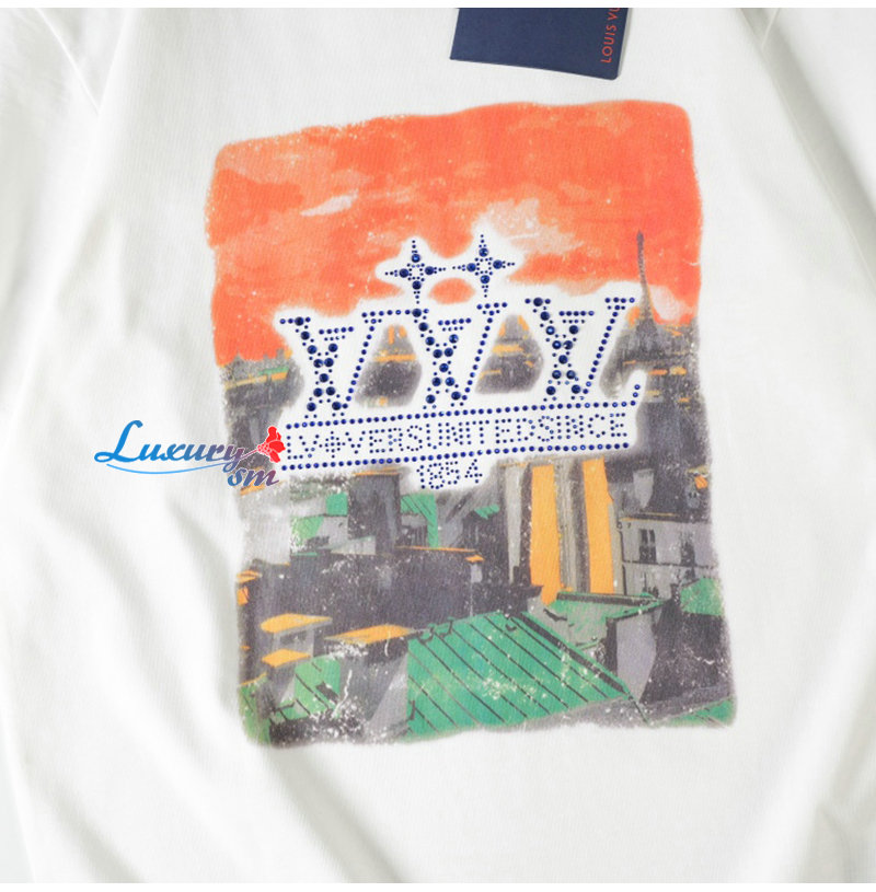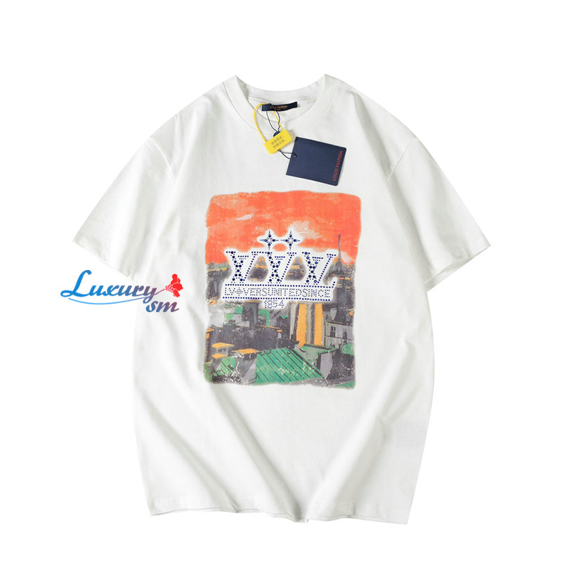 LOUIS VUITTON-050616 루이비통 화이트 프린트 장식 티셔츠 남여공용