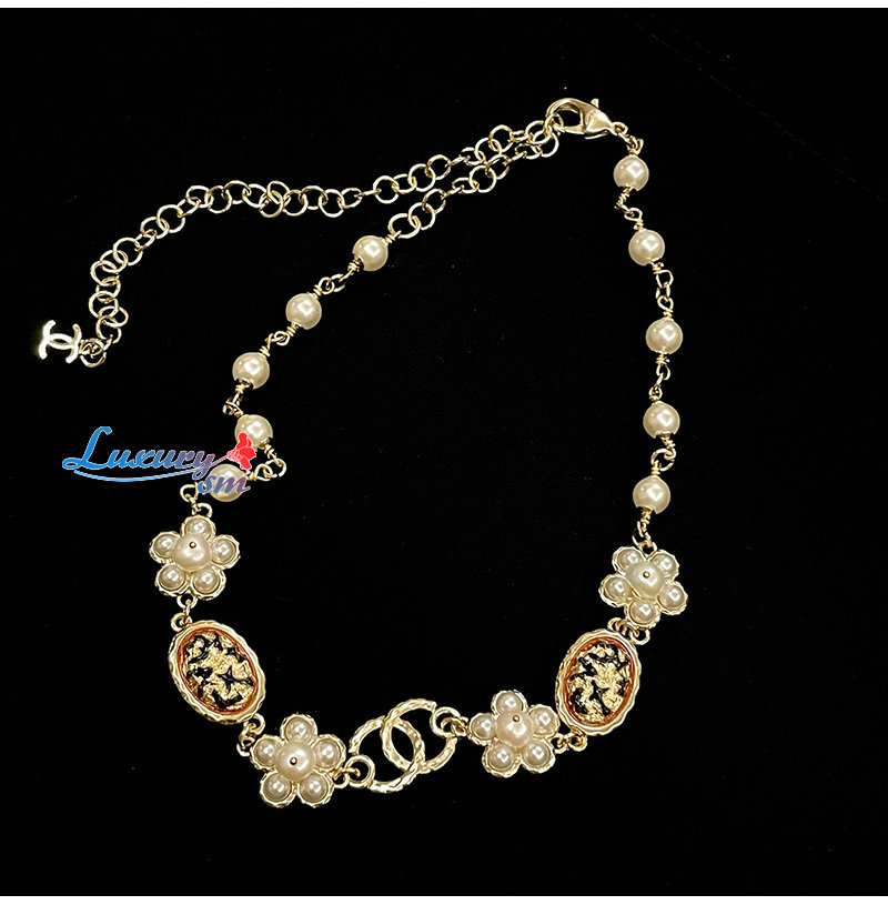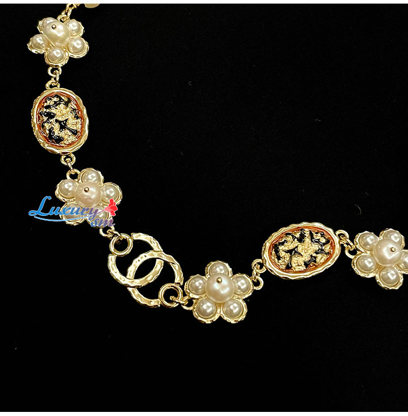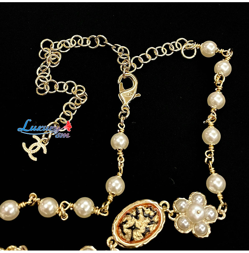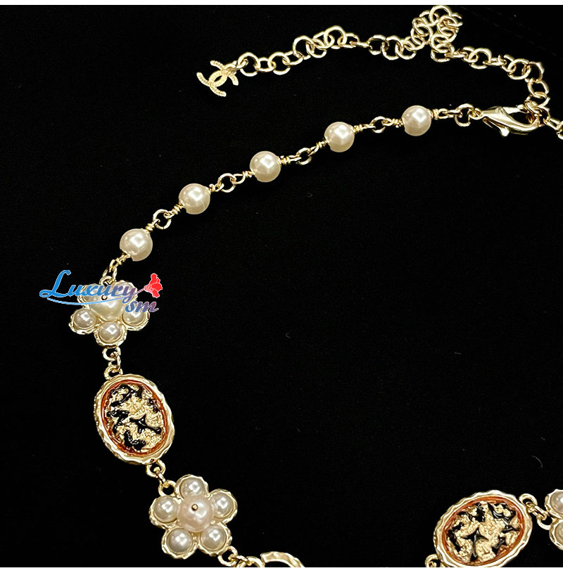 CHANEL-7440 샤넬 골드 진주 장식 목걸이