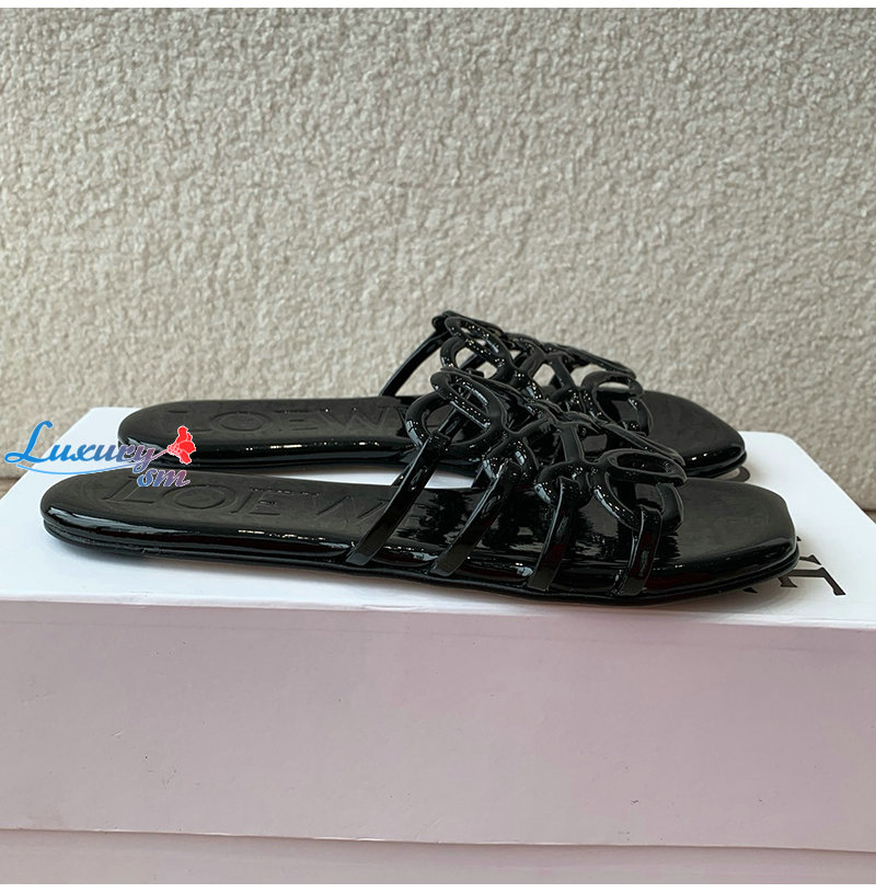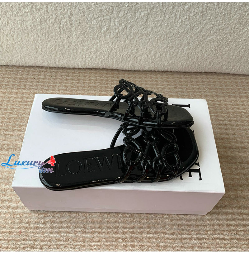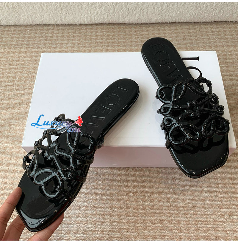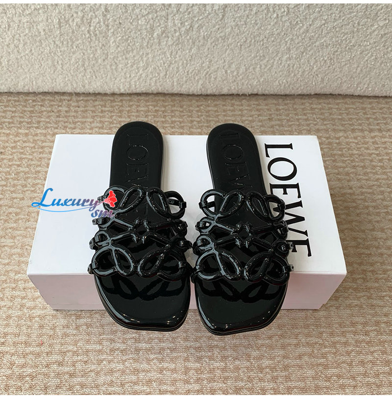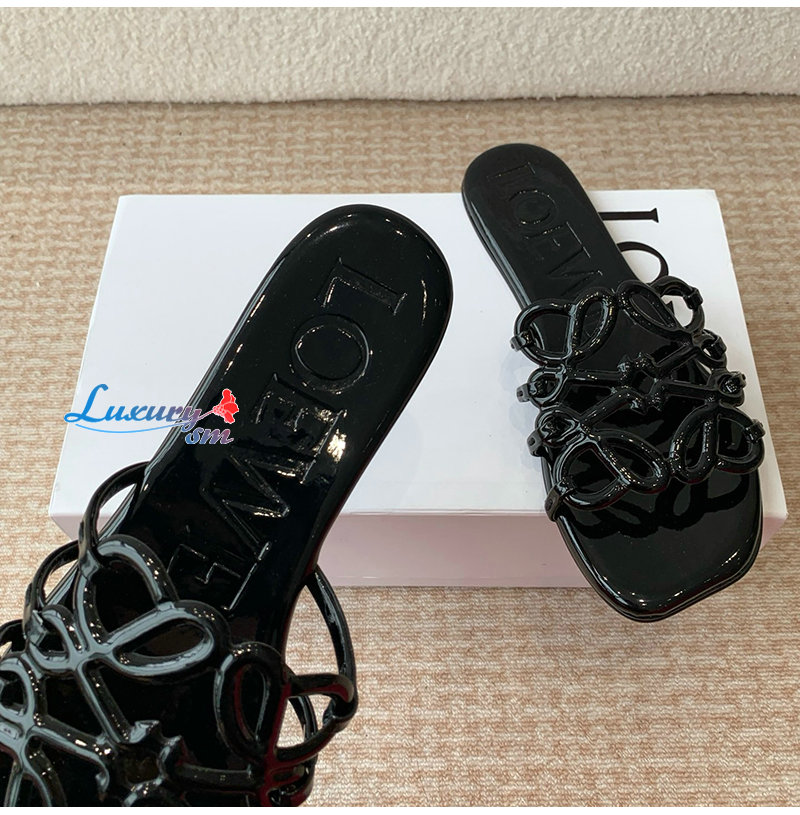 LOEWE-LLSP465 로에베 블랙 페탈 애너그램 슬라이드 여성용