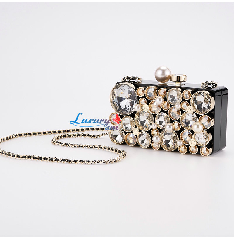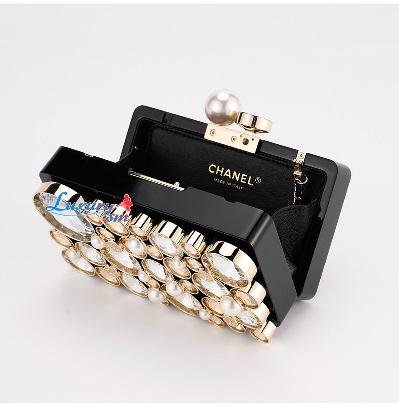 [스페셜오더]CHANEL-05045 샤넬 블랙 에나멜 크리스탈 장식 이브닝 백