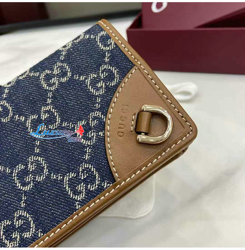 이 블루/아이보리 미니 지갑은 GG 데님 소재로