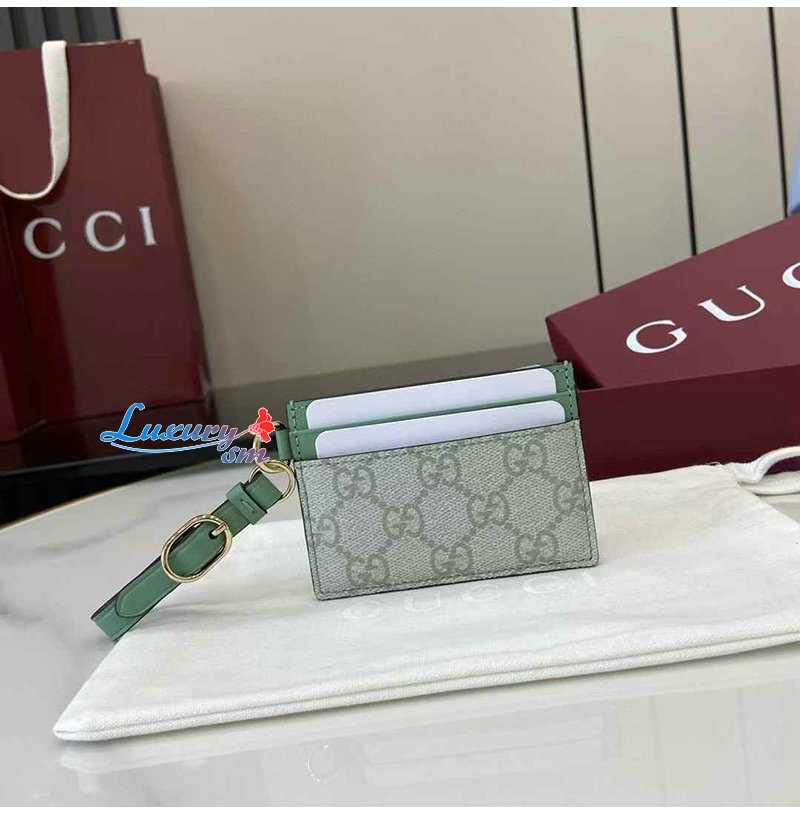 [스페셜오더]GUCCI-819121 8458 구찌 세이지 그린 GG 엠블럼 스트랩 카드 케이스