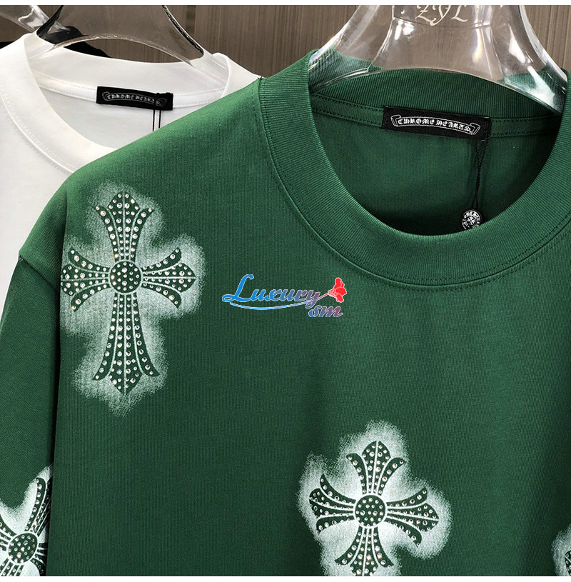 CHROMEHEARTS-05175 크롬하츠 그린 스터드 장식 티셔츠 남여공용