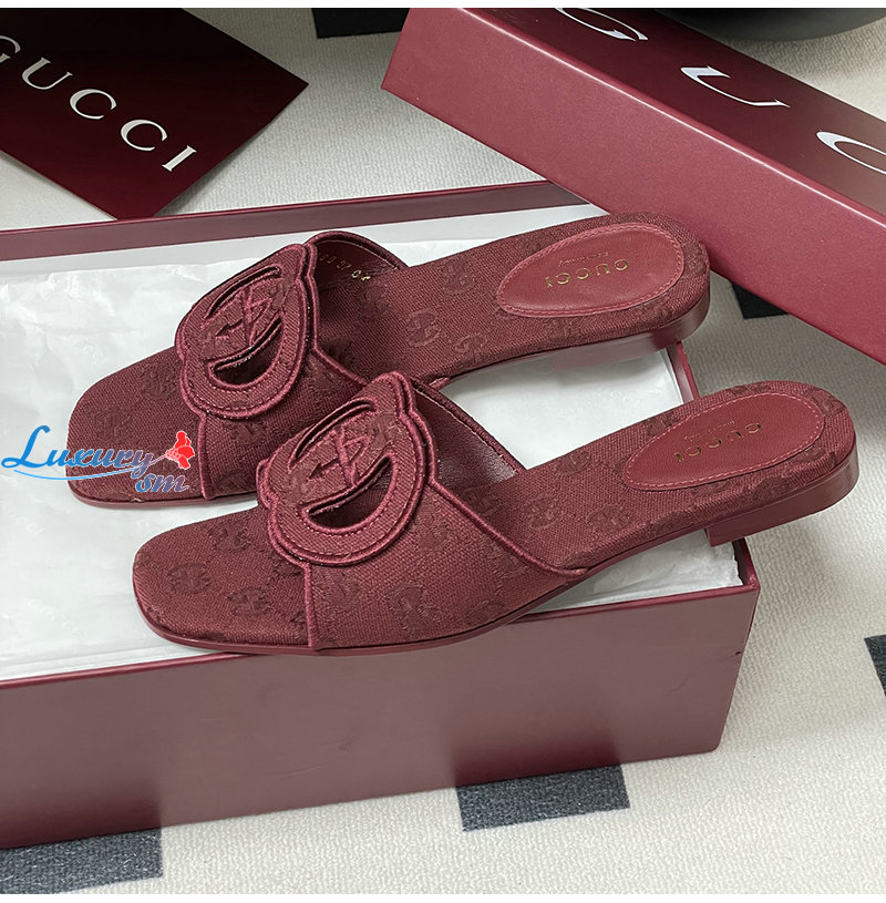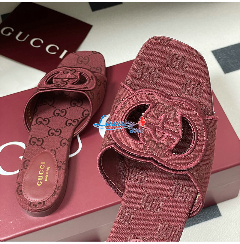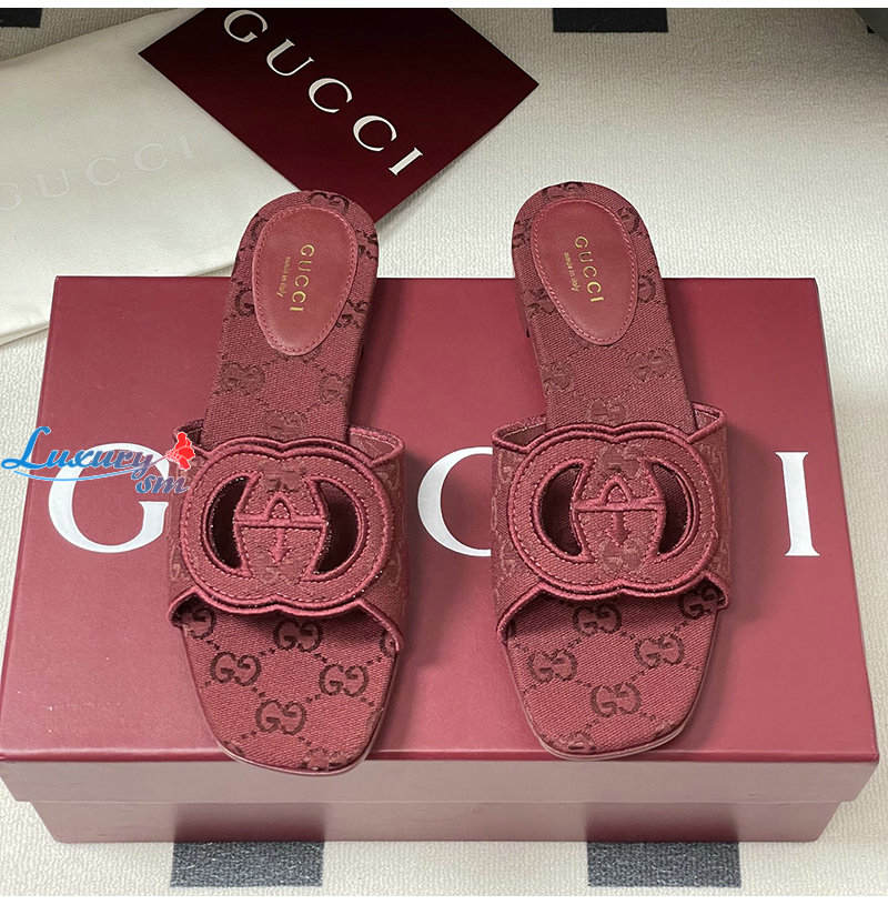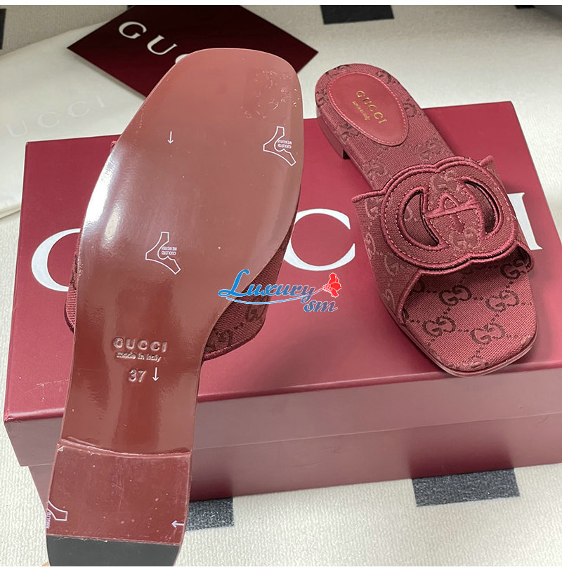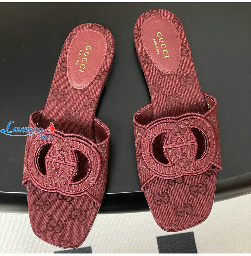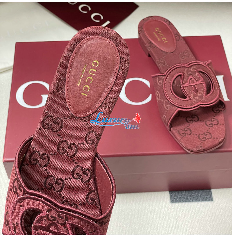 GUCCI-790447 8549 구찌 레드 인터로킹 G 슬라이드 샌들