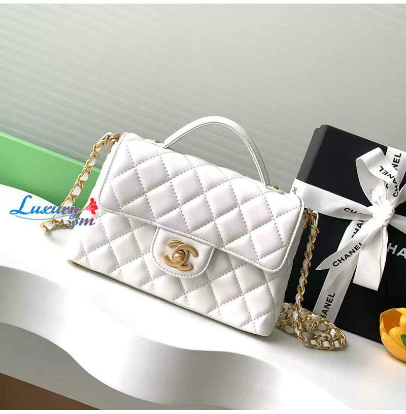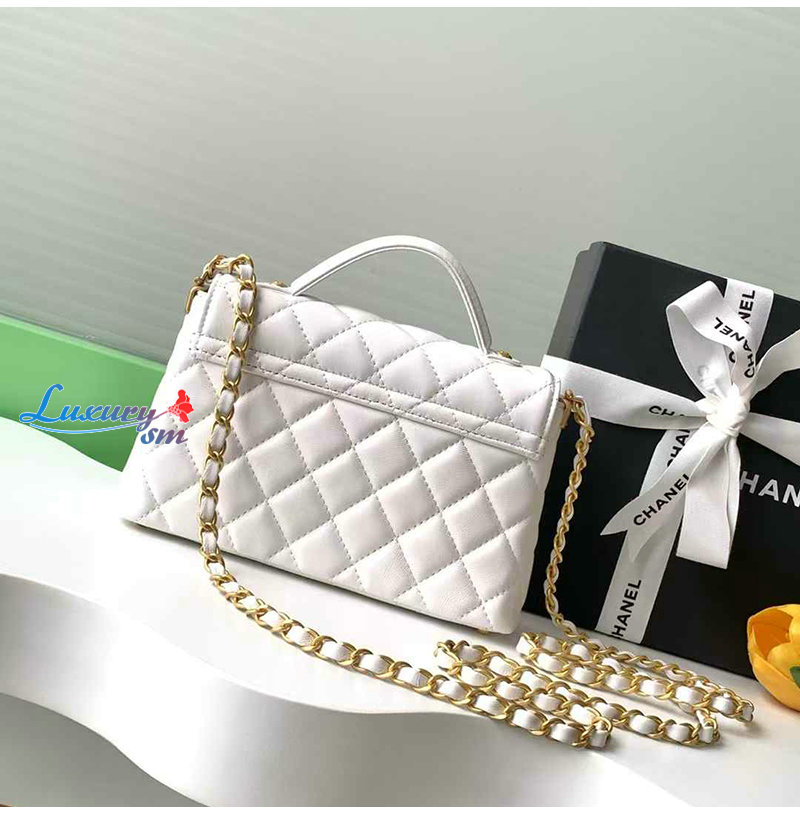 CHANEL-AS5355 샤넬 화이트 램스킨 핸들 장식