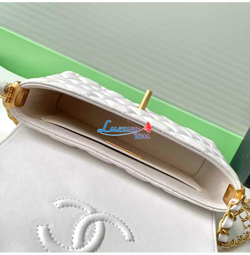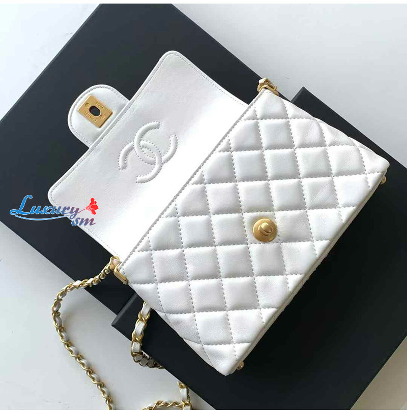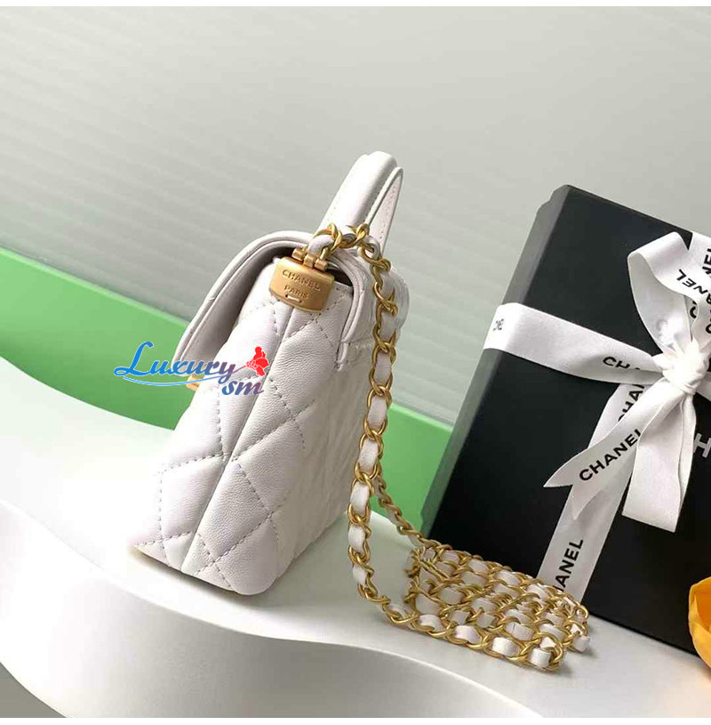 [스페셜오더]CHANEL-AS5355 샤넬 화이트 램스킨 핸들 장식 스몰 플랩 백