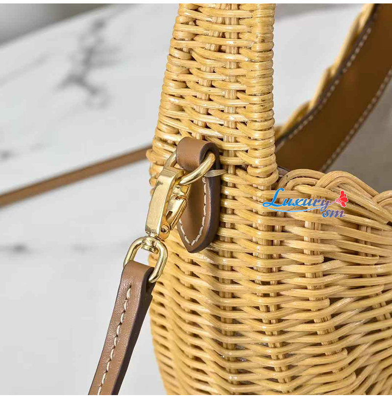가죽 장식과 로고로 장식된 우아한 위커 소재는