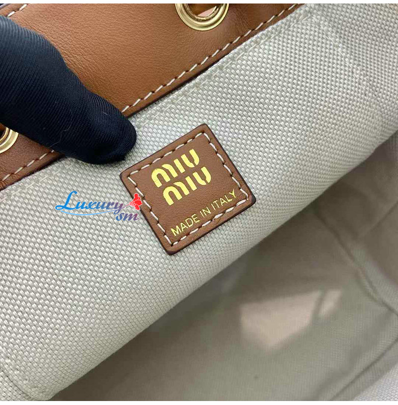 [스페셜오더]MIUMIU-5BZ043 미우미우 그레이 캔버스 가죽 백팩 스몰