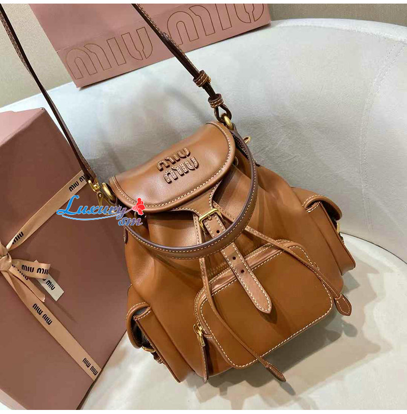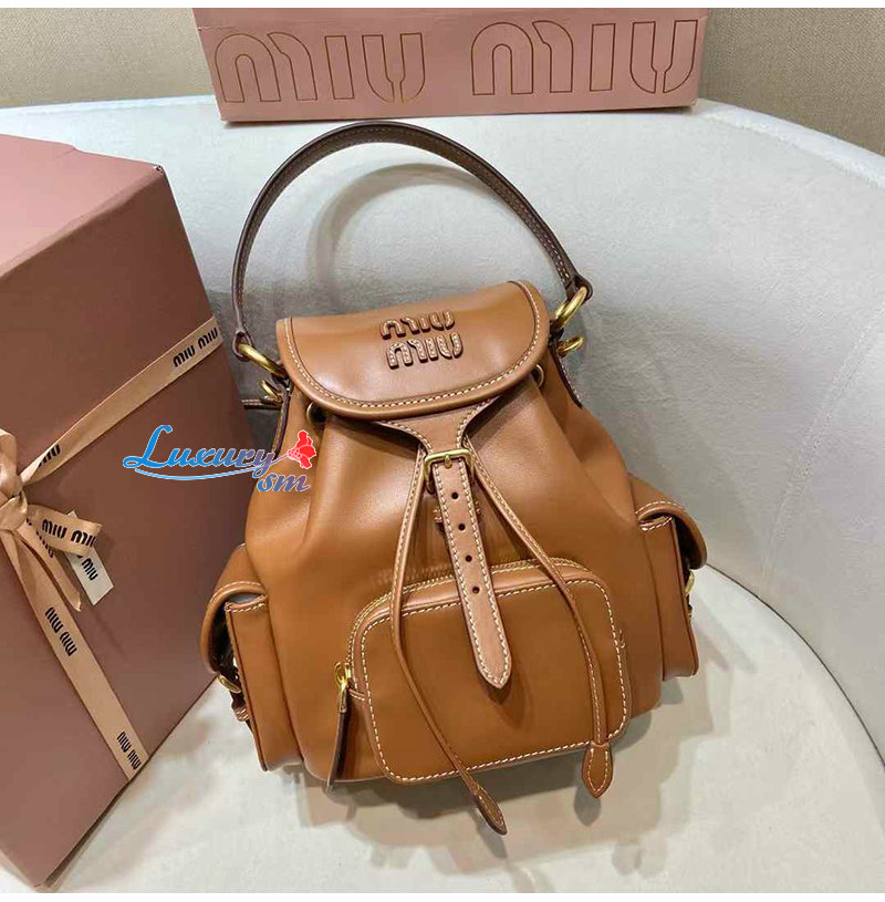 MIUMIU-5BZ043 미우미우 코냑 송아지 가죽 백팩
