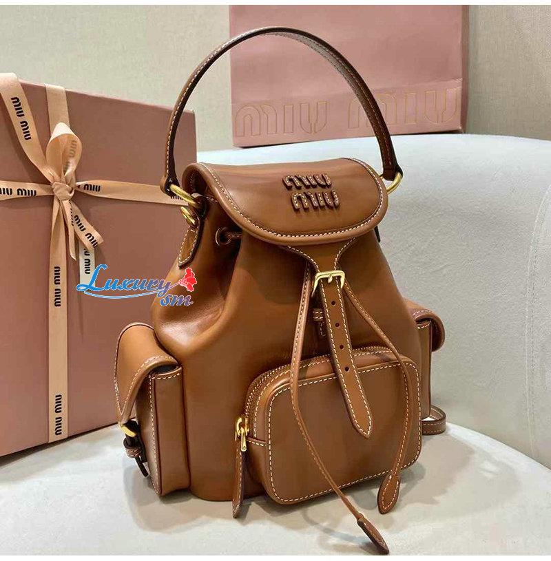 [스페셜오더]MIUMIU-5BZ043 미우미우 코냑 송아지 가죽 백팩 스몰