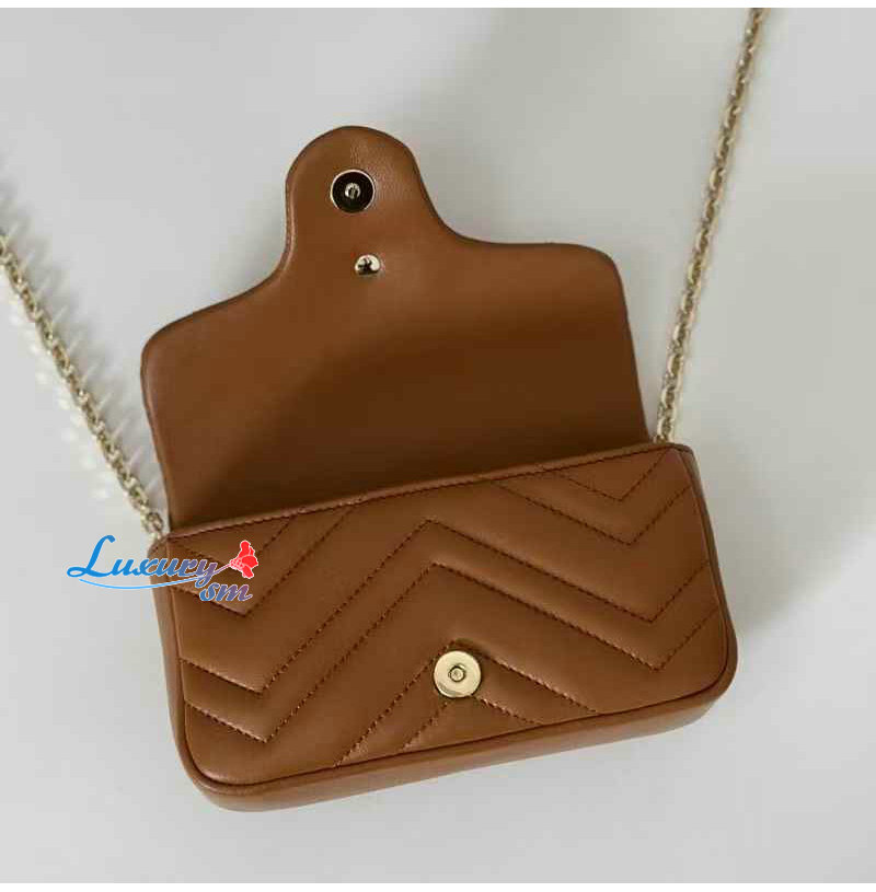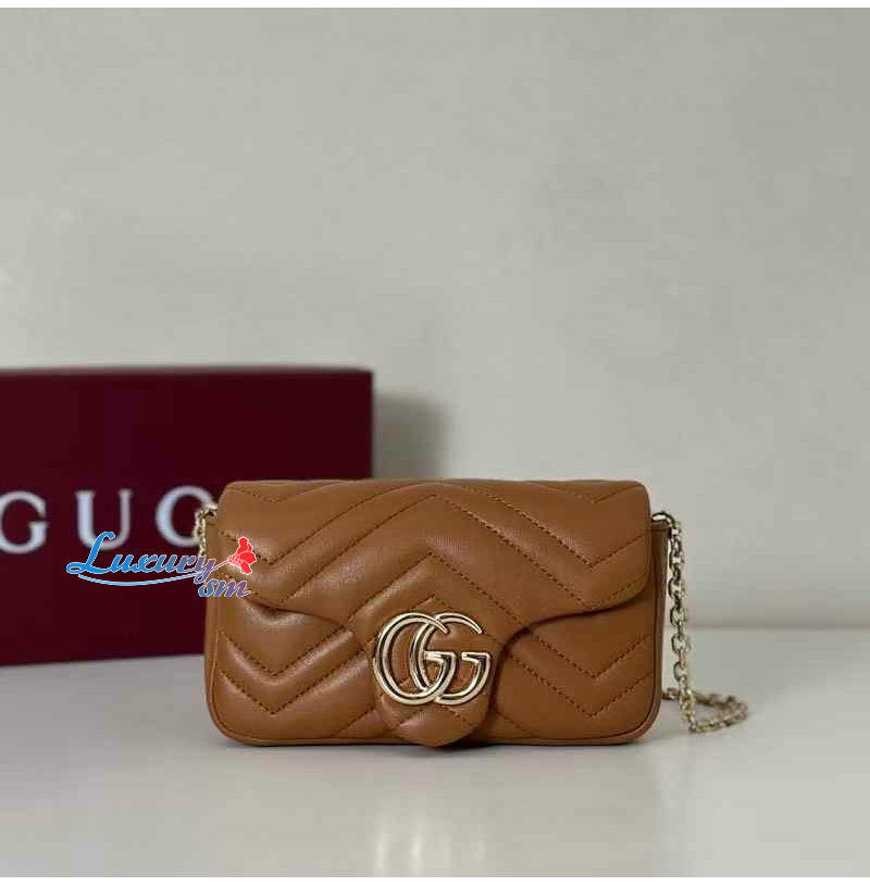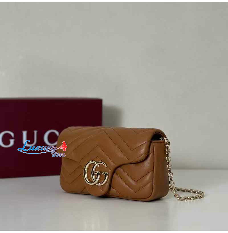 [스페셜오더]GUCCI-841290 2718 구찌 브라운 가죽 GG 마몽 미니 숄더백