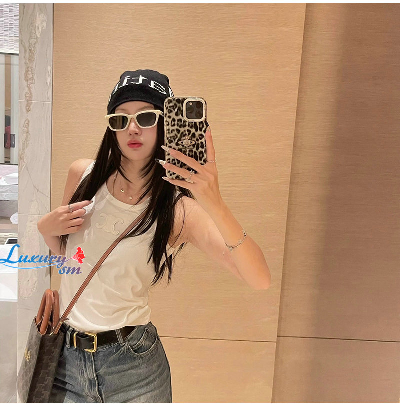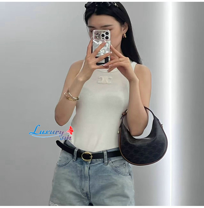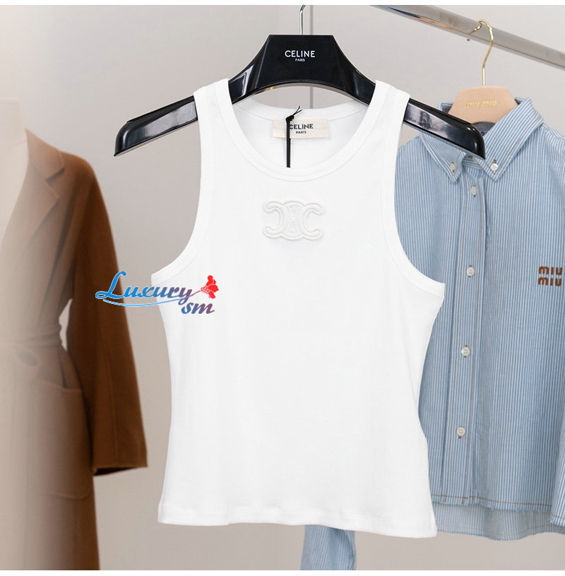 CELINE-2X45N0 셀린느 화이트 트리옹프 탱크 탑 여성용