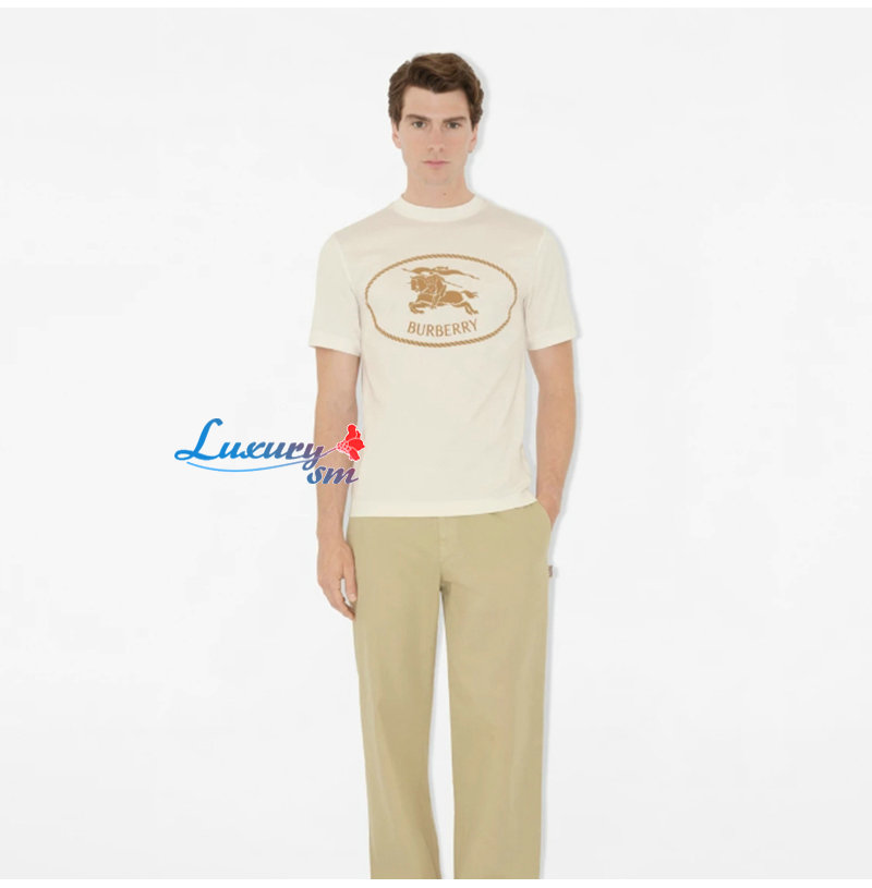 BURBERRY-81101121 버버리 아이보리 나이트 스탬프 코튼 티셔츠 남여공용