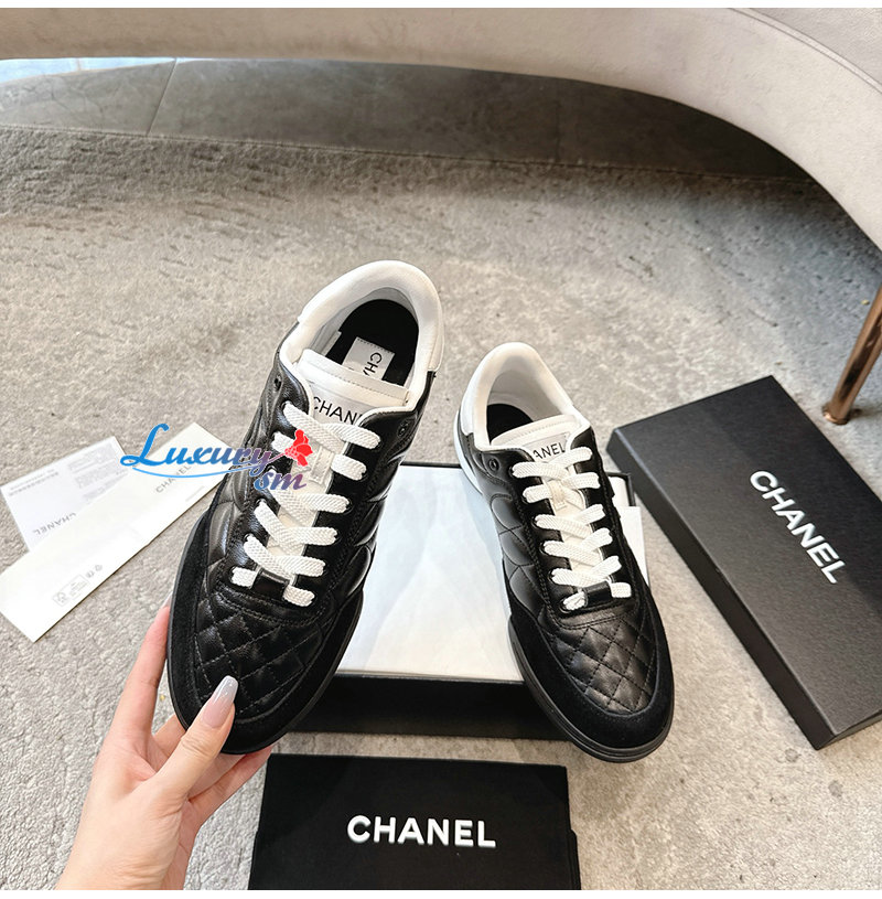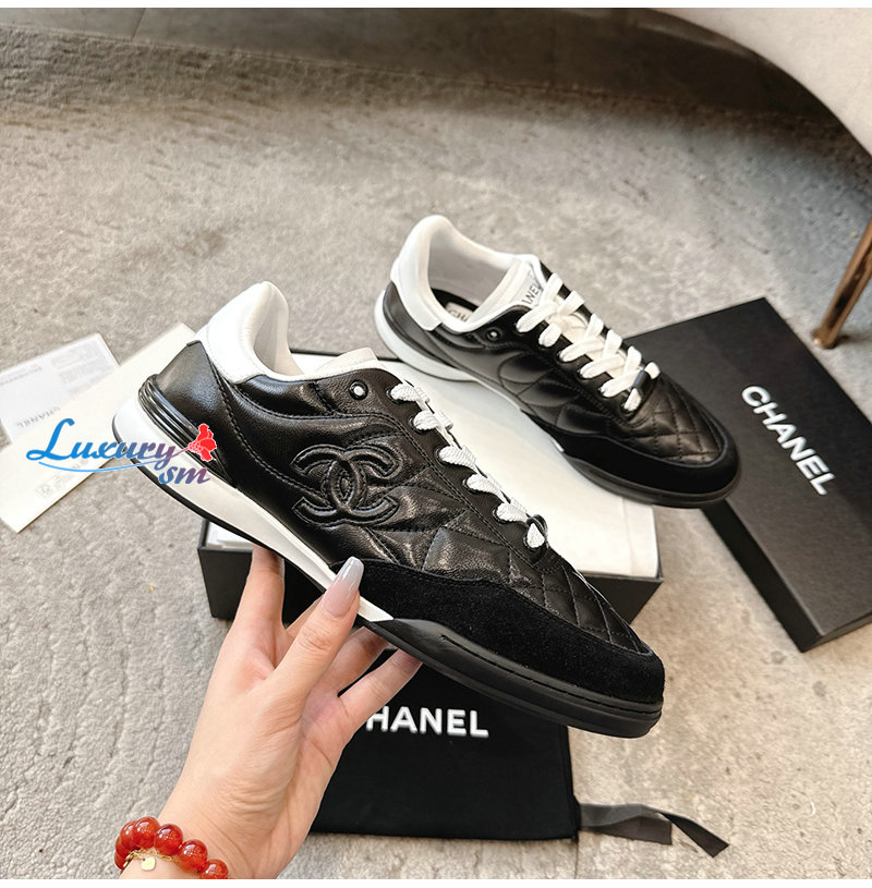 CHANEL-G45839 샤넬 블랙 유광 카프스킨 스니커즈 남여공용