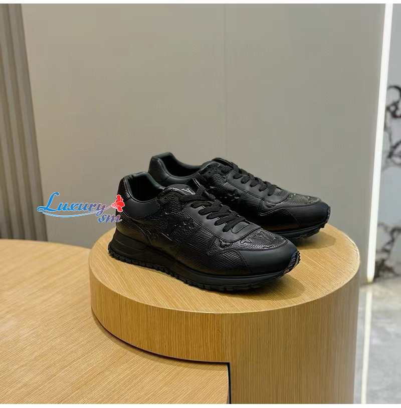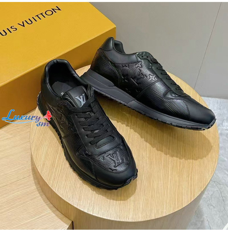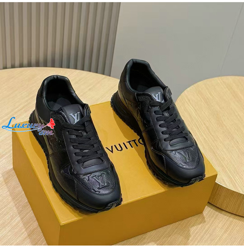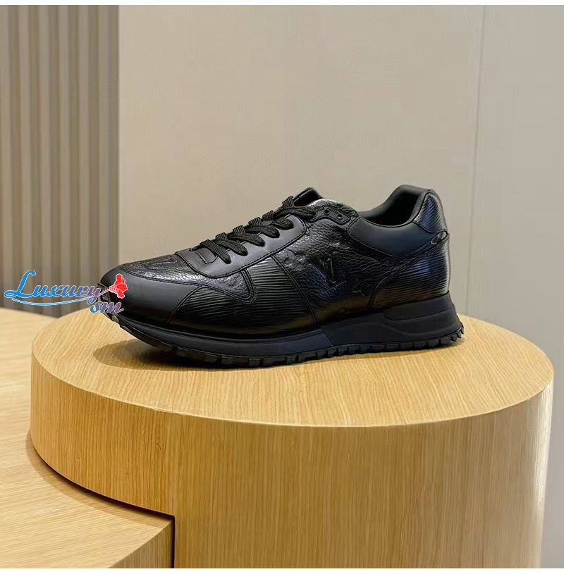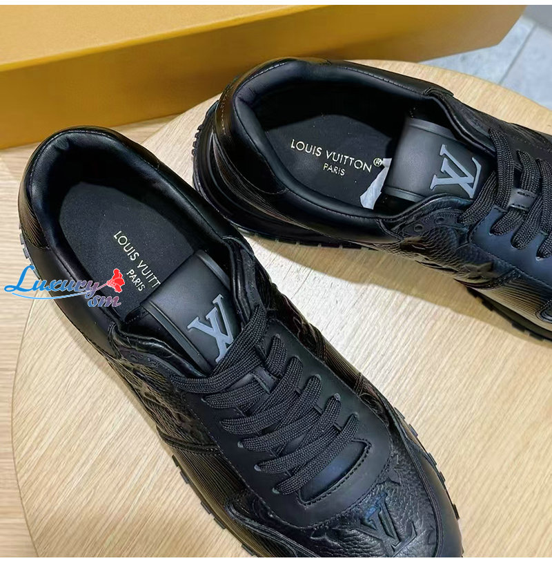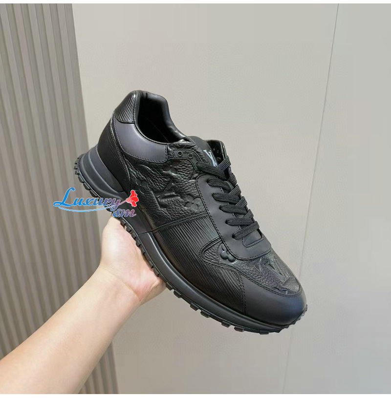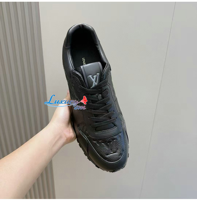 LOUIS VUITTON-1AILES 루이비통 블랙 모노그램 송아지 가죽 런 어웨이 스니커즈 남성용