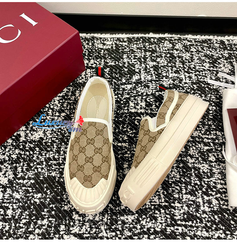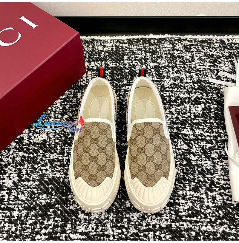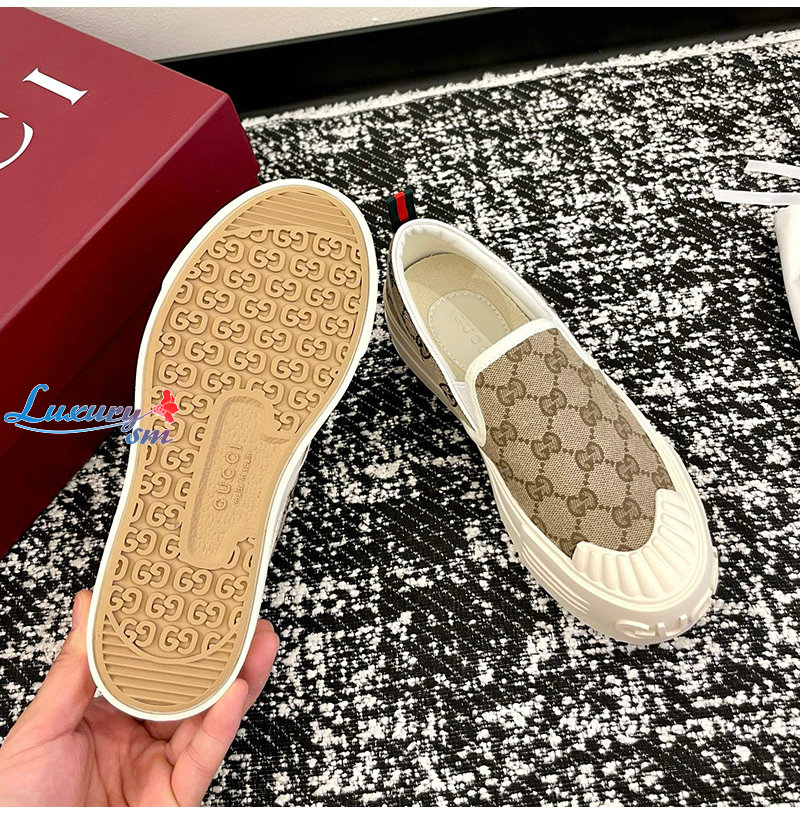 GUCCI-836059 9746 구찌 라이트 베이지 GG 캔버스 슬립온 스니커즈 여성용