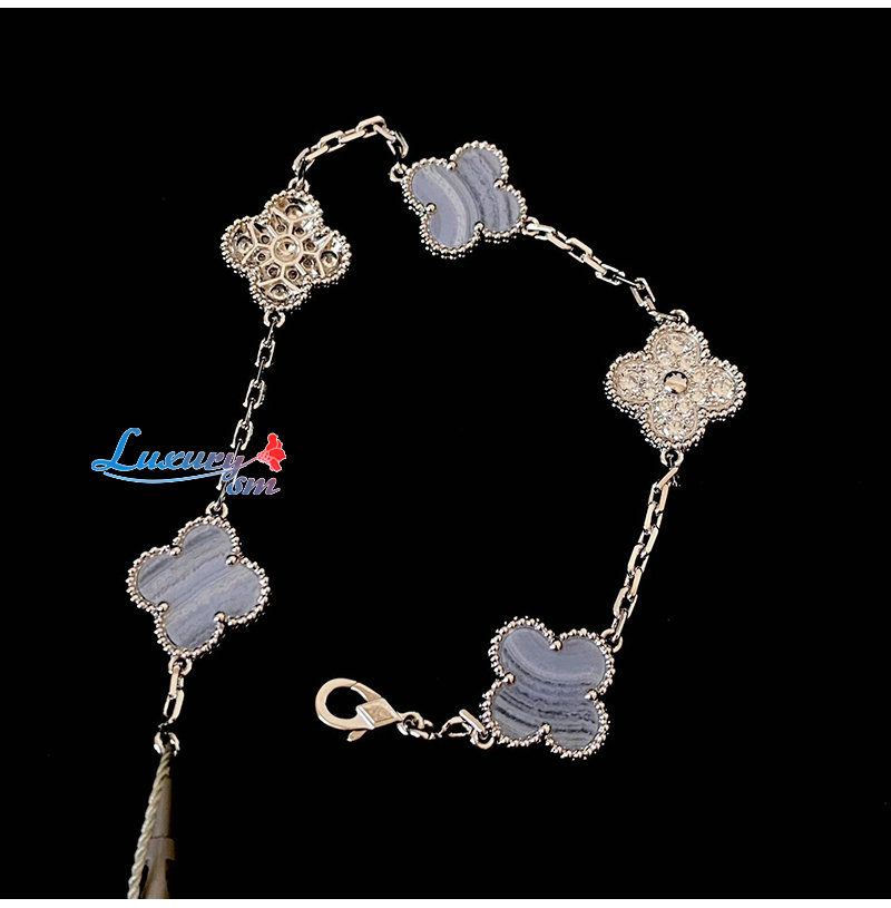 [스페셜오더]VAN CLEEF ARPELS-VCARP2 반클리프 실버/라이트 블루 다이아몬드 빈티지 알함브라 브레이슬릿