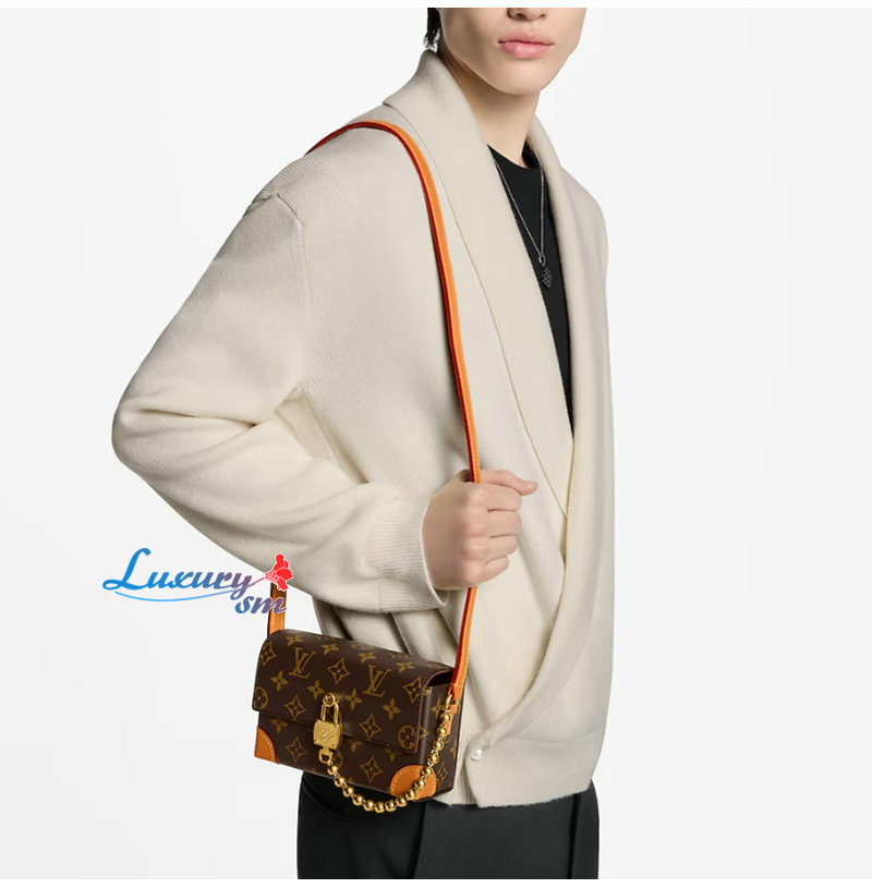 모노그램 캔버스 소재에 골드 색상 하드웨어와