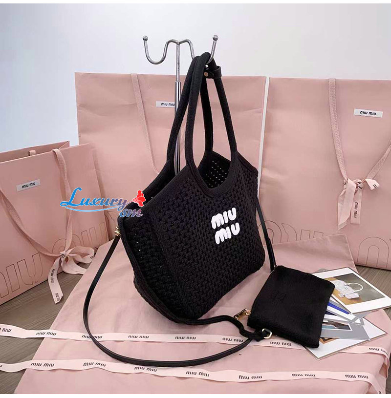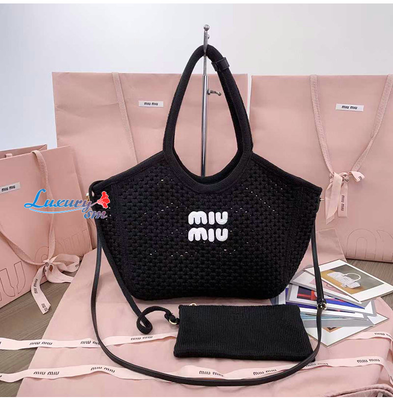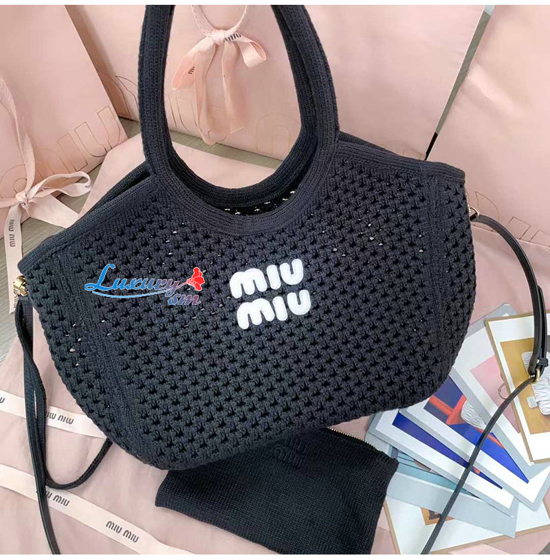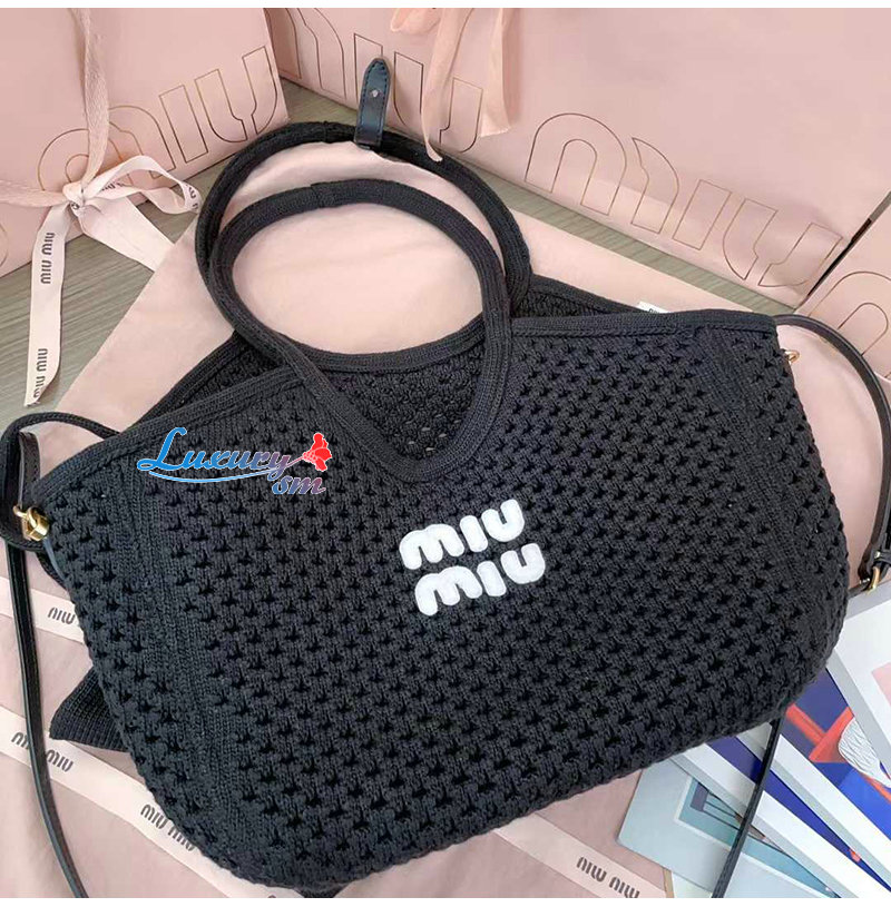 [스페셜오더]MIUMIU-5BG281 미우미우 블랙 코튼 메쉬 아이비 토트 백