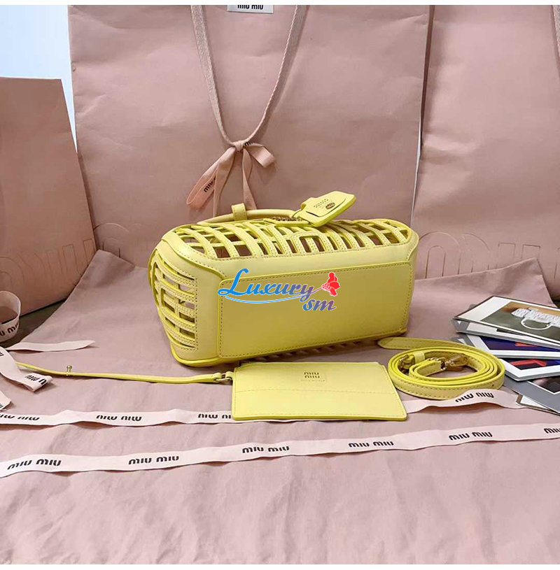[스페셜오더]MIUMIU-5BA294 미우미우 옐로우 위빙 모티프 가죽 바스켓