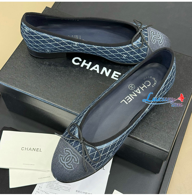 CHANEL-07118 샤넬 블루 데님 플랫 슈즈