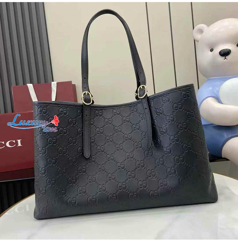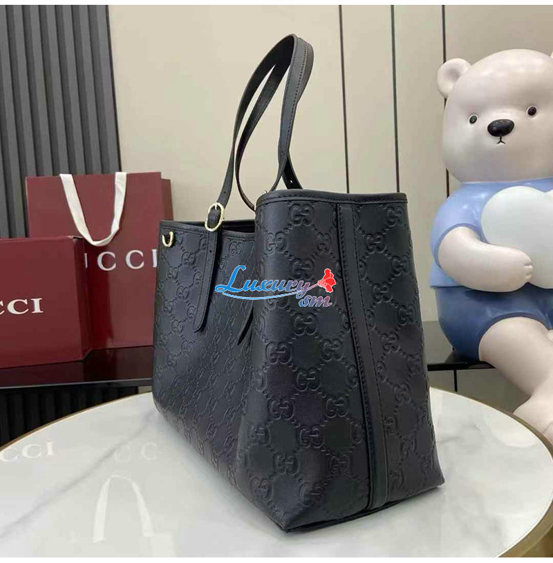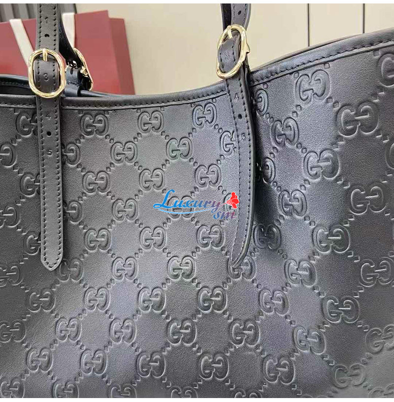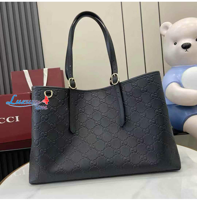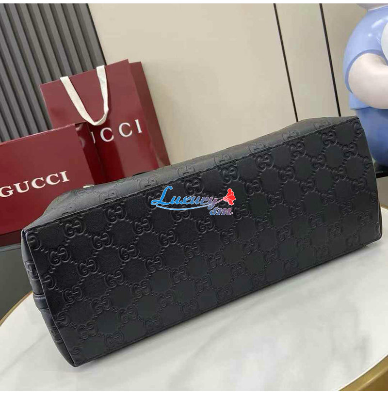 [스페셜오더]GUCCI-815213 1000 구찌 블랙 GG 엠블럼 가죽 라지 토트백