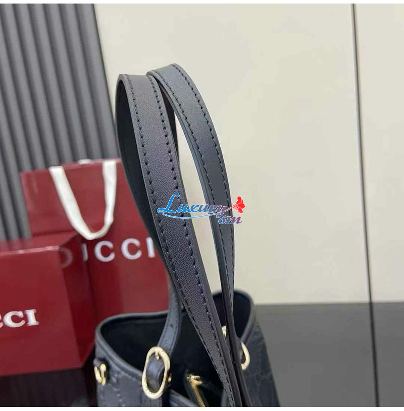 [스페셜오더]GUCCI-815213 1000 구찌 블랙 가죽 GG 엠블럼 미디엄 토트백