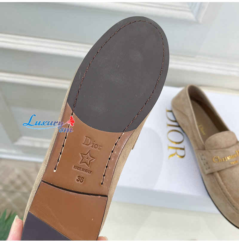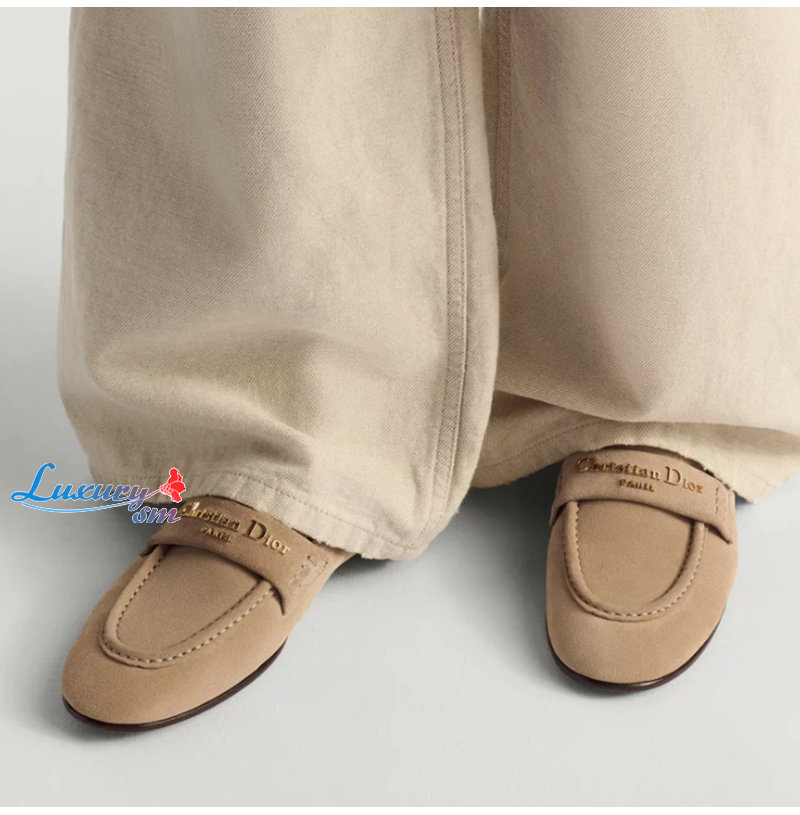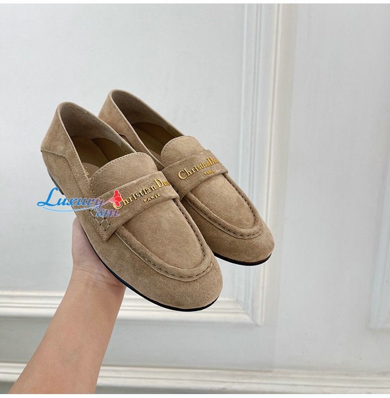 DIOR-KDF037 디올 베이지 스웨이드 송아지 가죽 Dior Boy 로퍼 여성용
