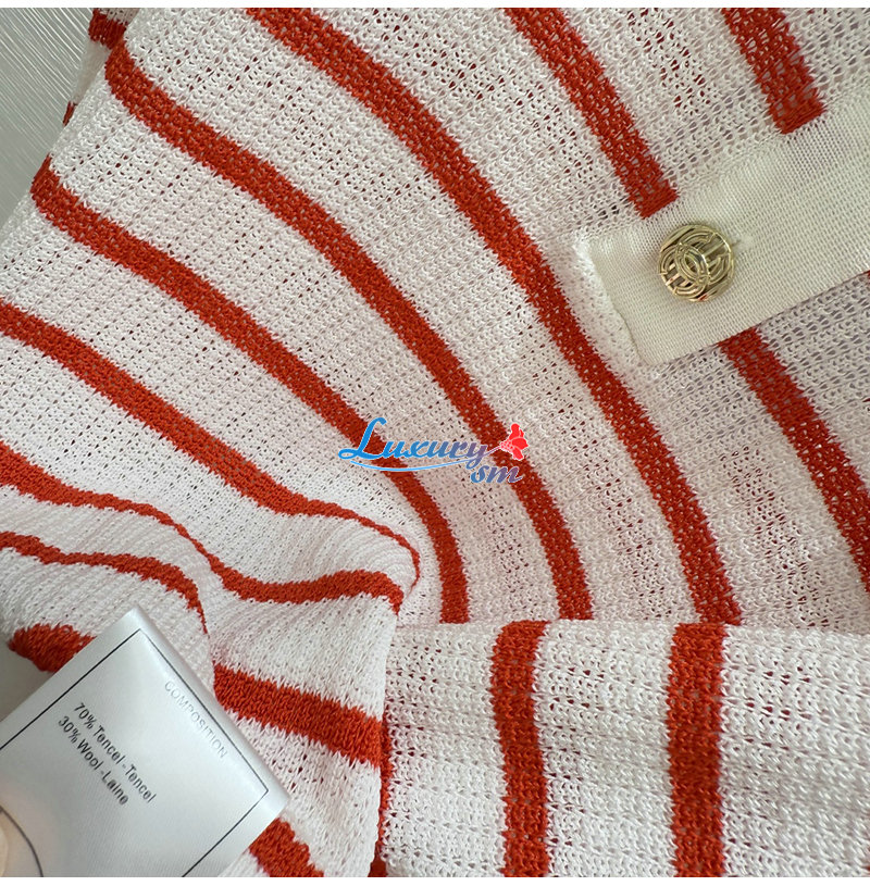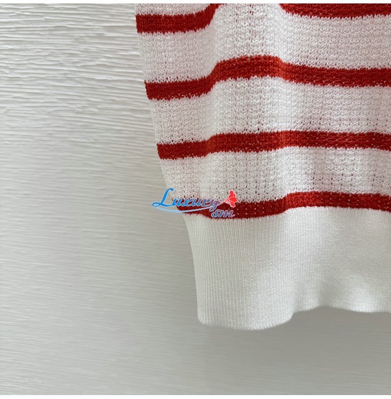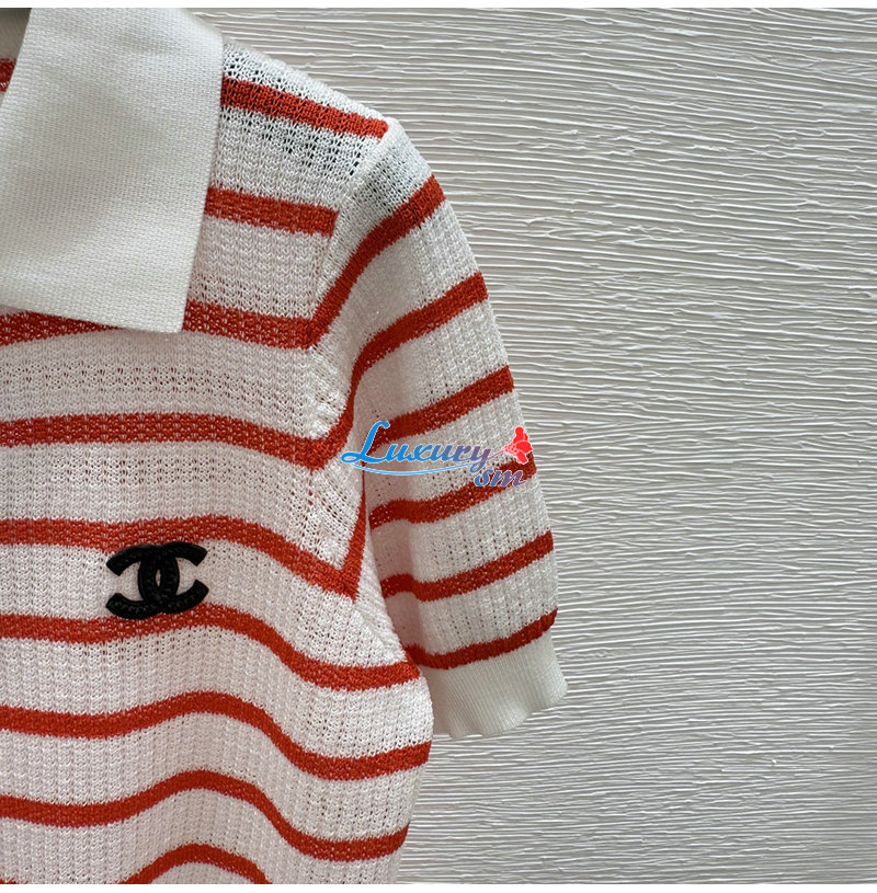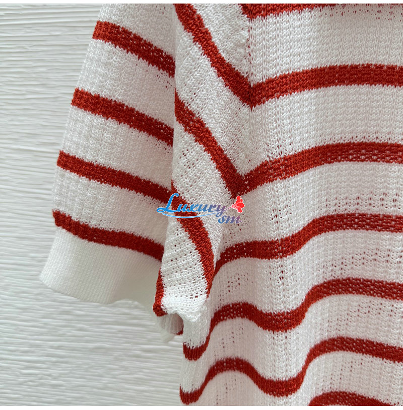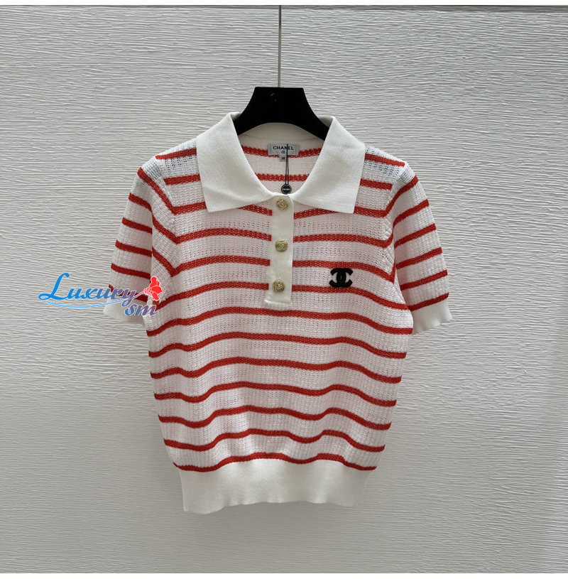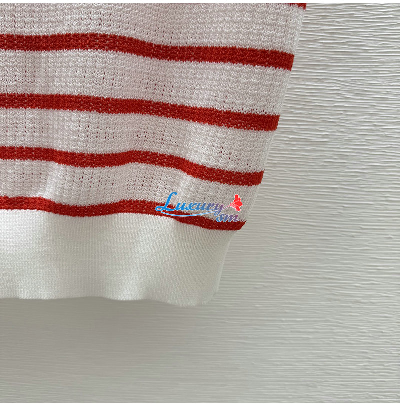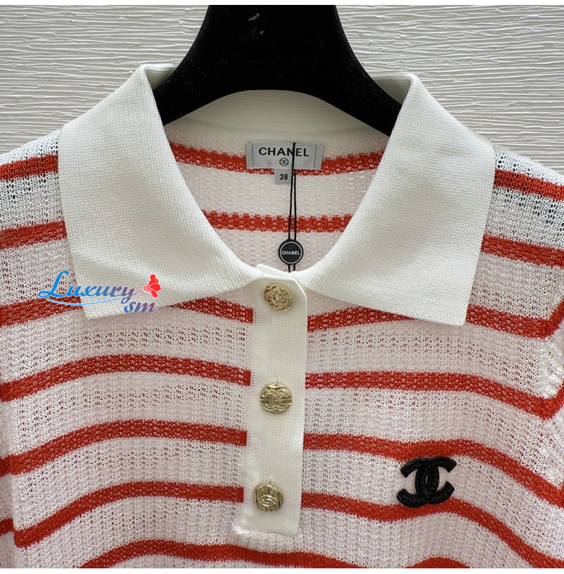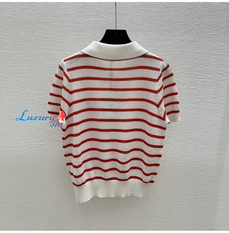 CHANEL-07264 샤넬 화이트/레드 스트라이프 폴로 티셔츠 여성용